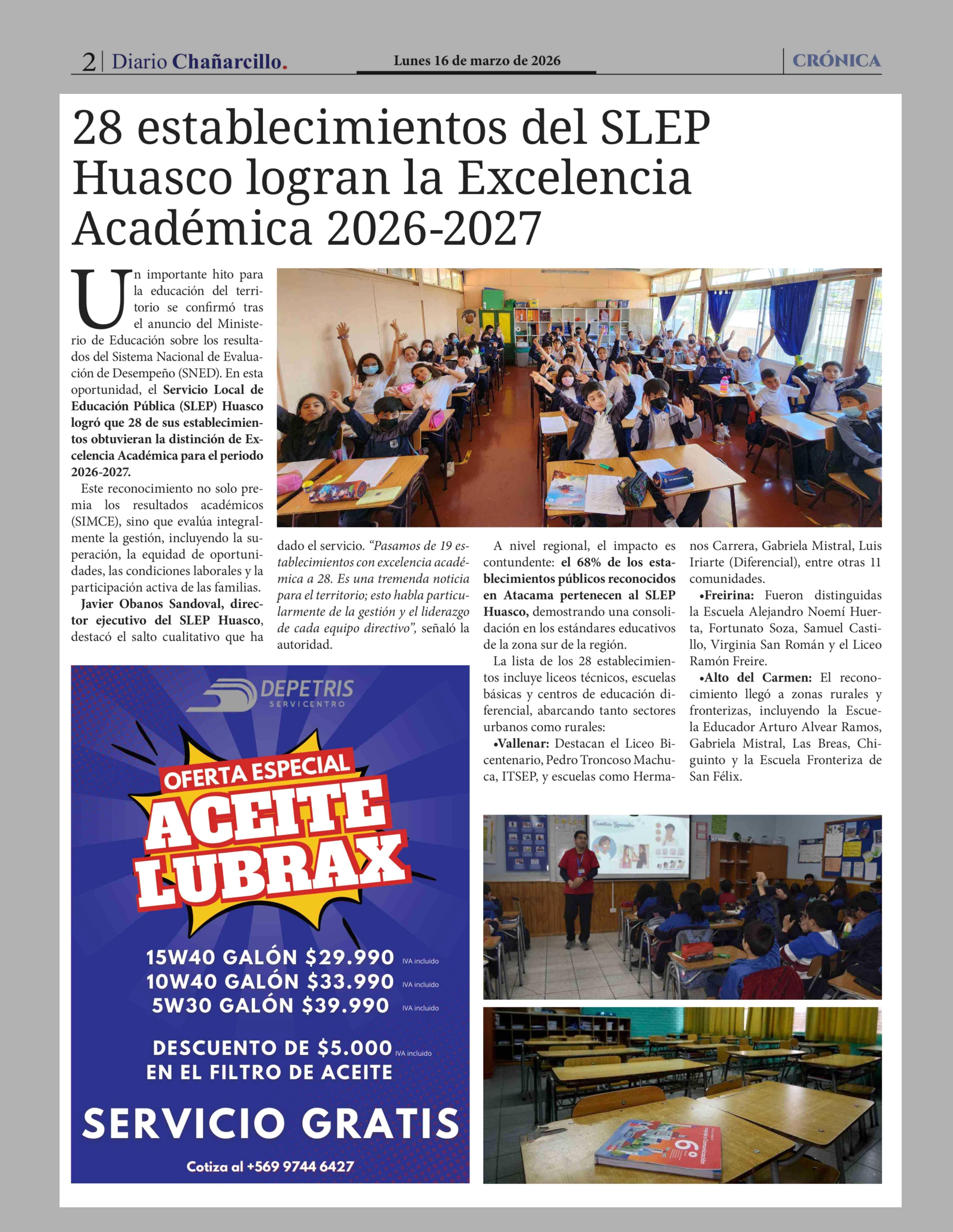 Título: 28 Establecimientos del SLEP Huasco logran la Excelencia Académica 2026-2027