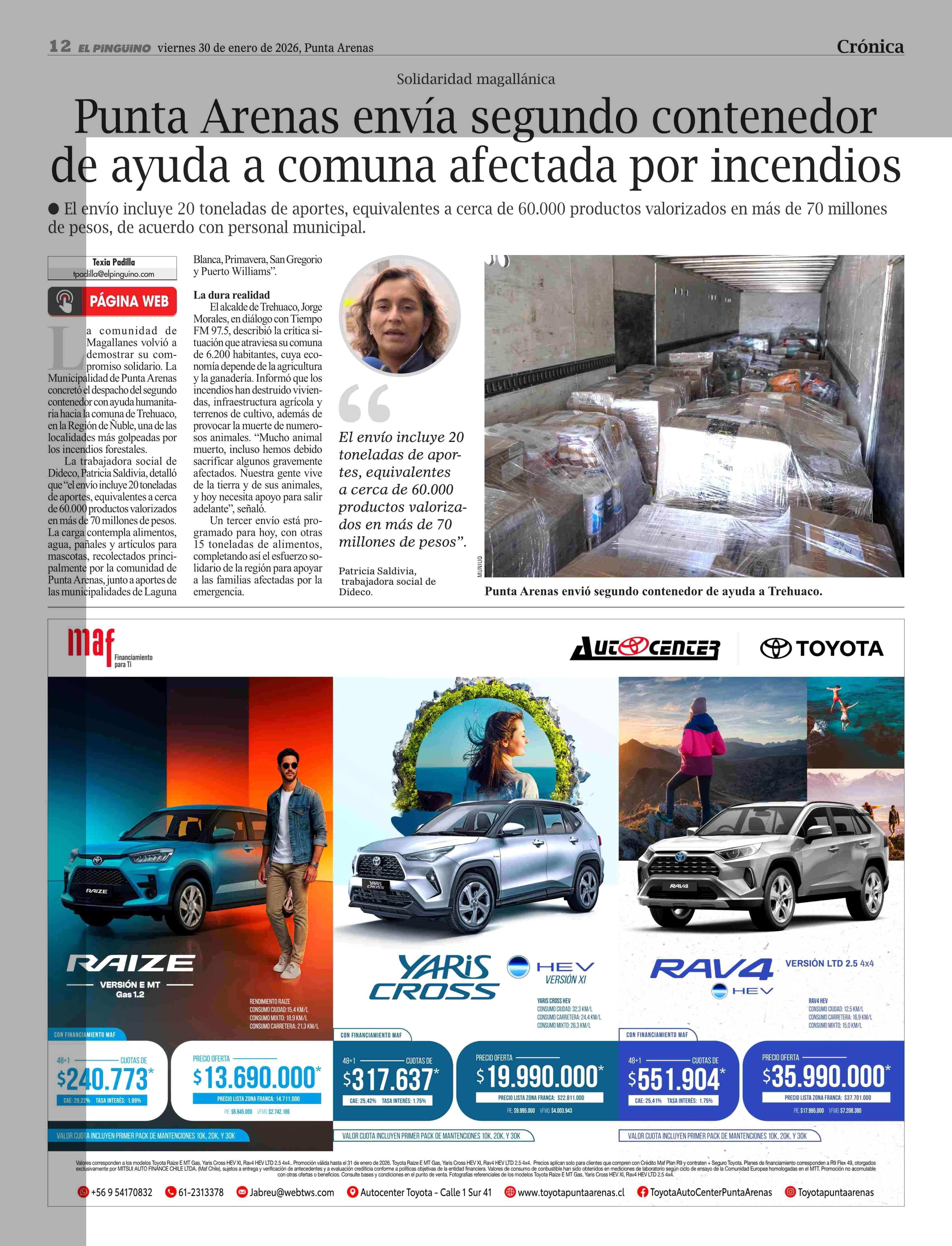 Título: Punta Arenas envía segundo contenedor de ayuda a comuna afectada por incendios
