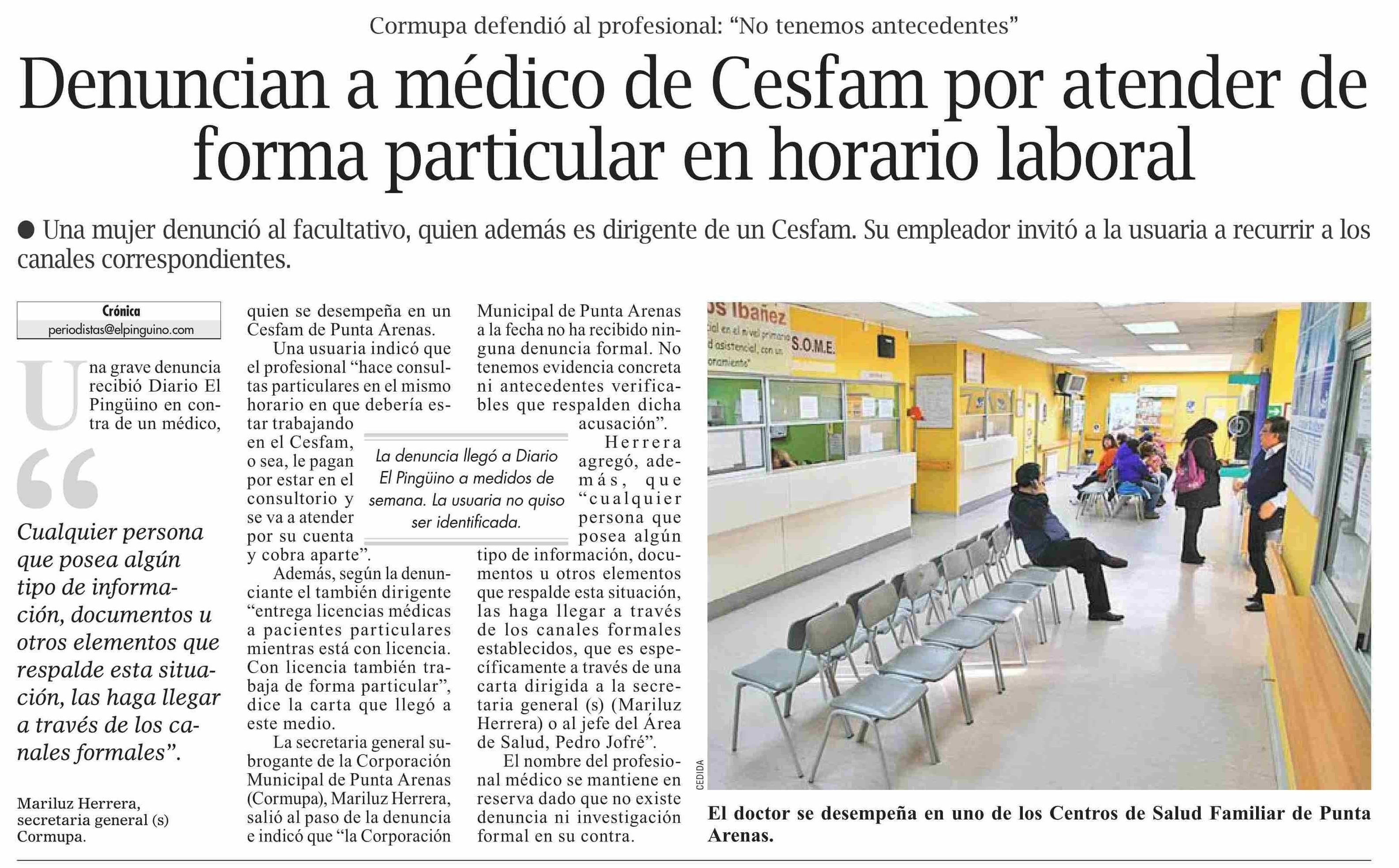 | Título: | Denuncian a médico de Cesfam por atender de forma particular en horario laboral |