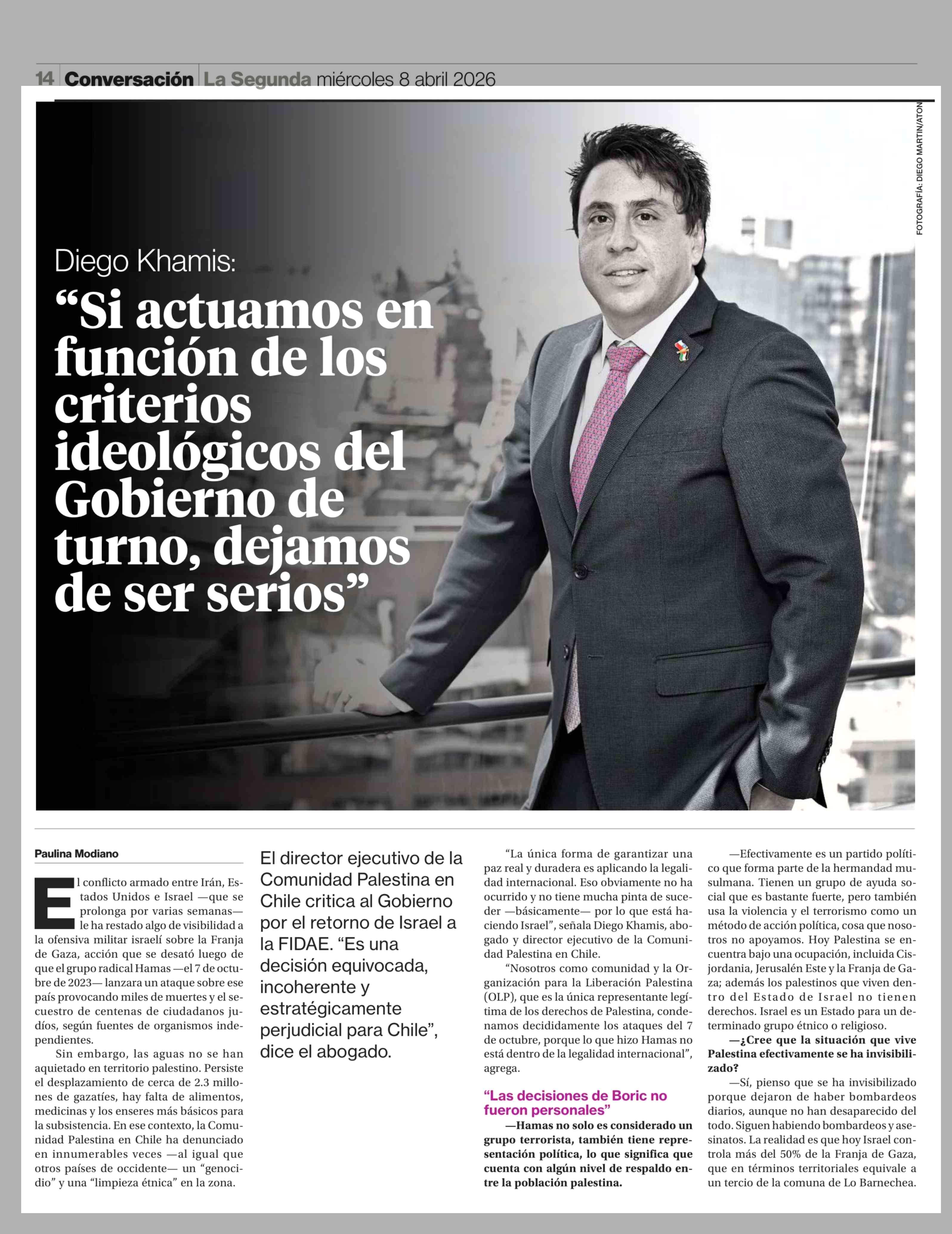 Título: Diego Khamis: "Si actuamos en función de los criterios ideológicos del Gobierno de turno, dejamos de ser serios"