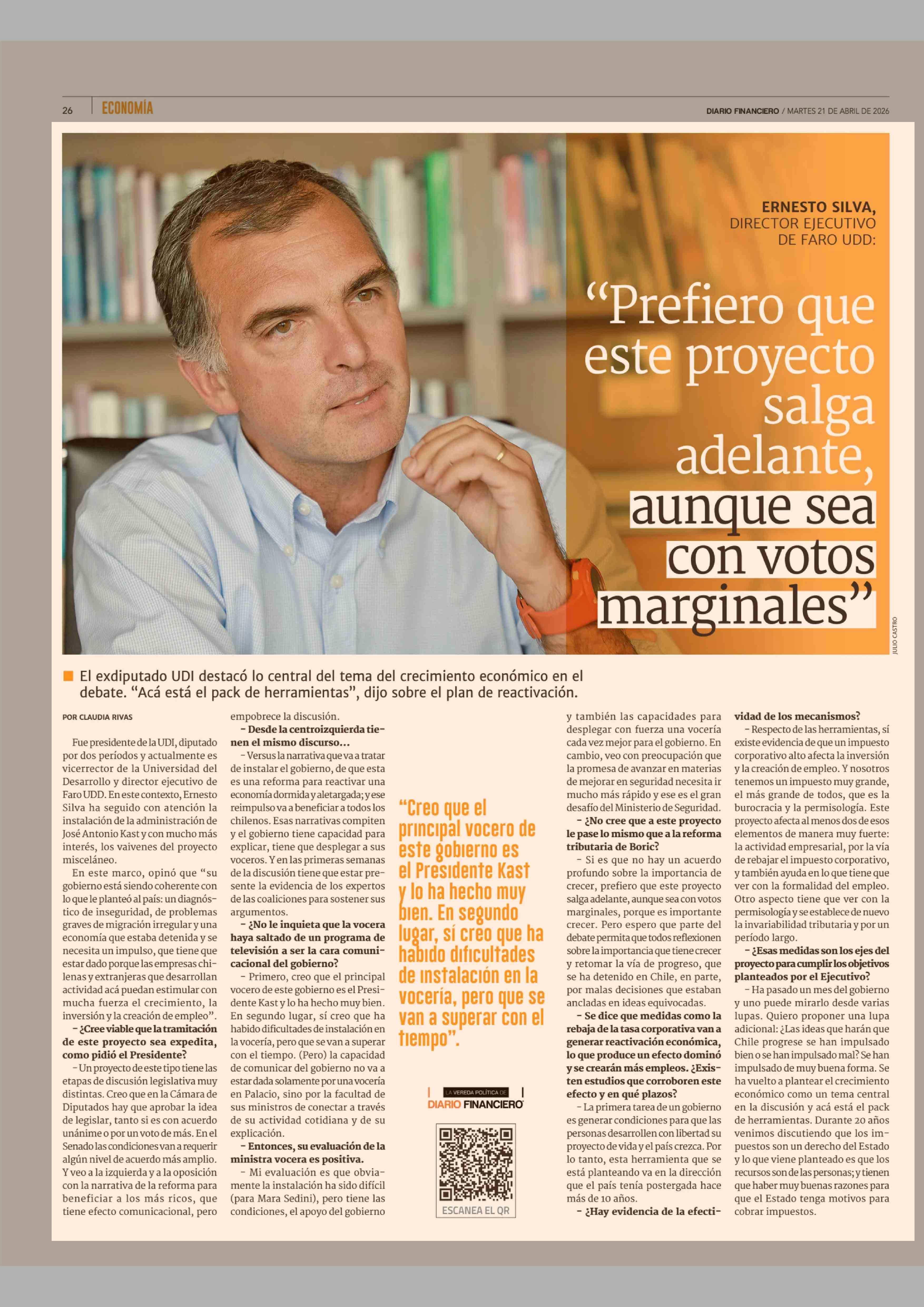 "Prefiero que este proyecto salga adelante, aunque sea con votos marginales' 21-04-2026 Diario Financiero |