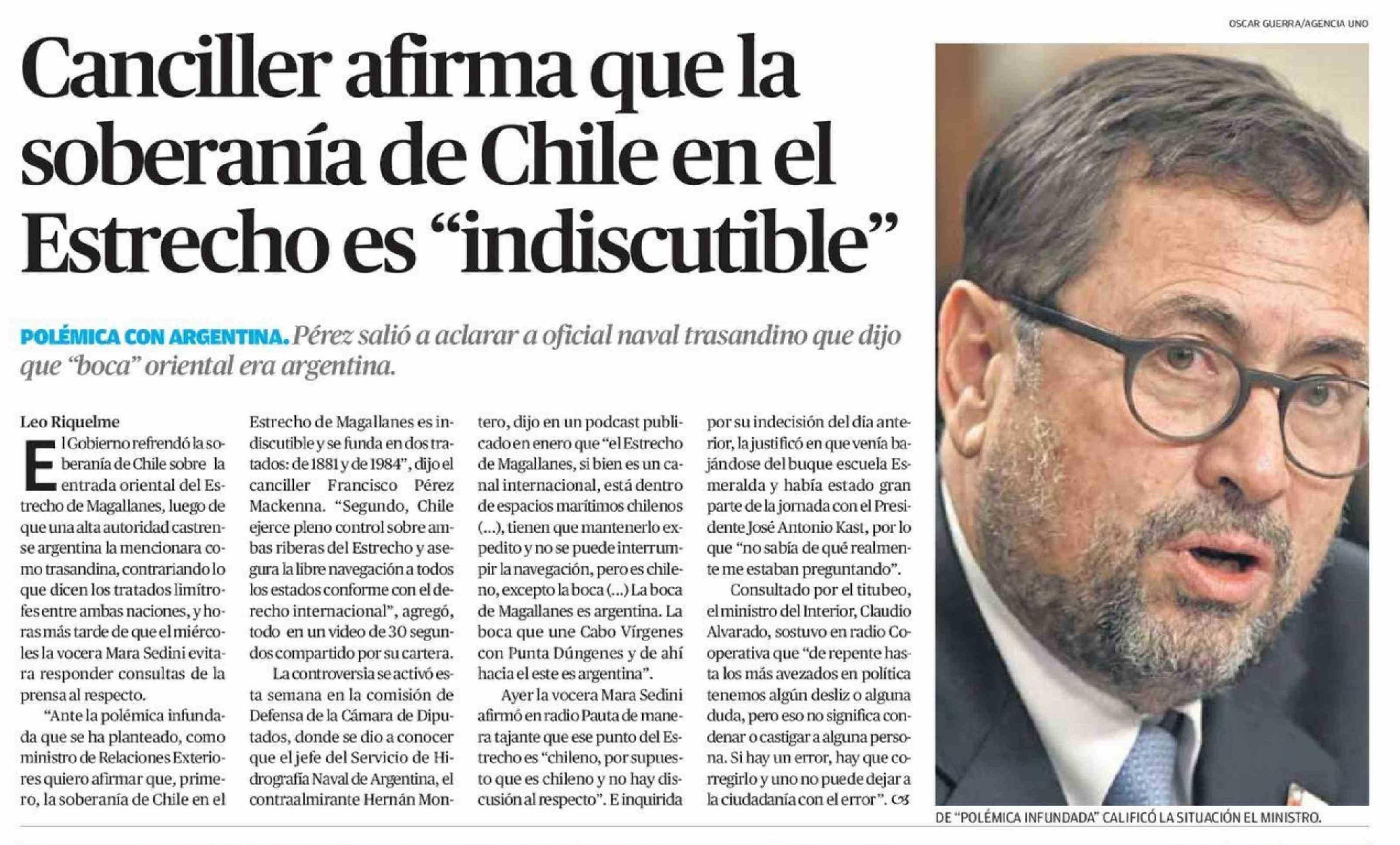 Canciller afirma que la soberanía de Chile en el Estrecho es "indiscutible" 17-04-2026 El Mercurio de Calama |