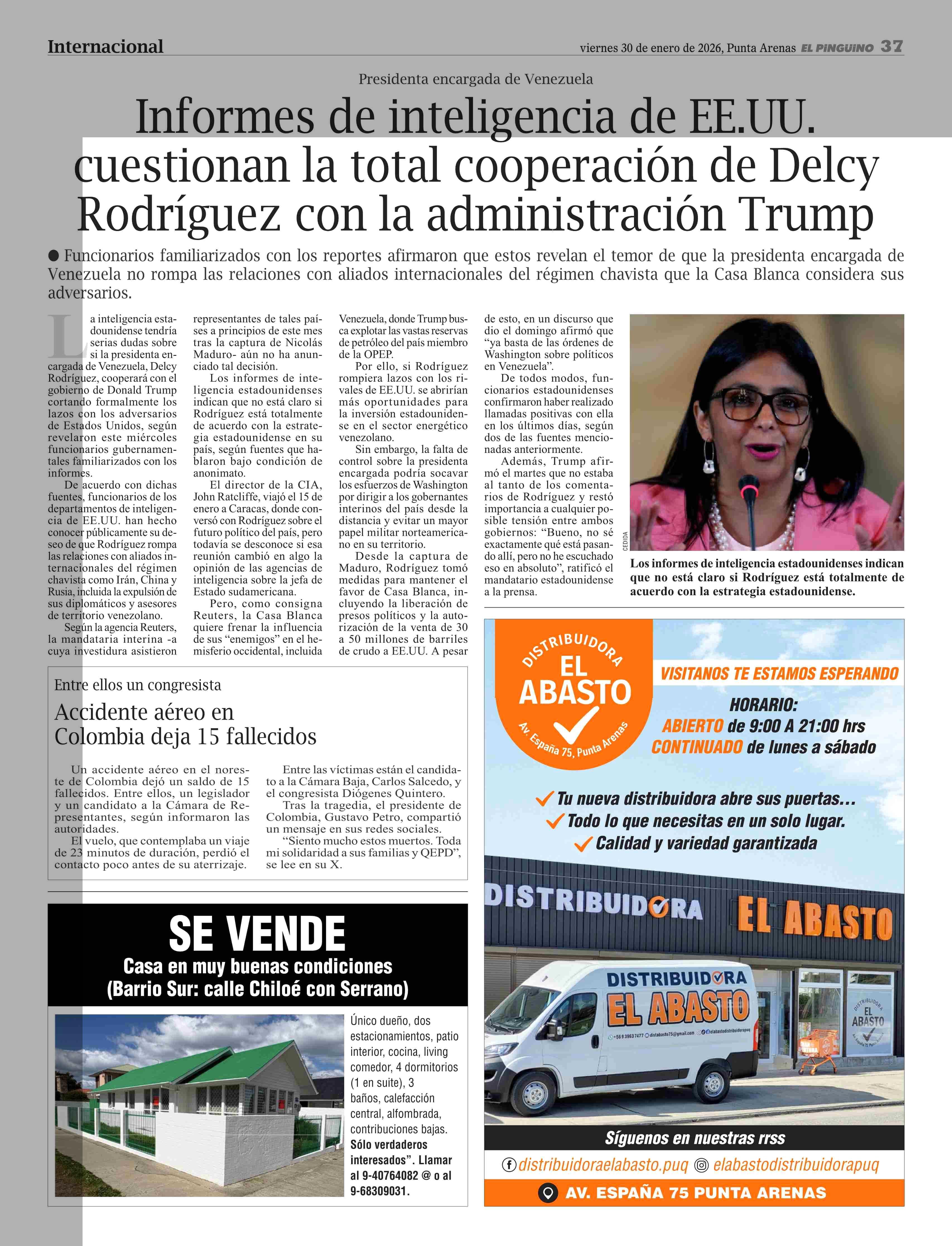 Informes de inteligencia de EE.UU. cuestionan la total cooperación de Delcy Rodríguez con la administración Trump 30-01-2026 El Pingüino |