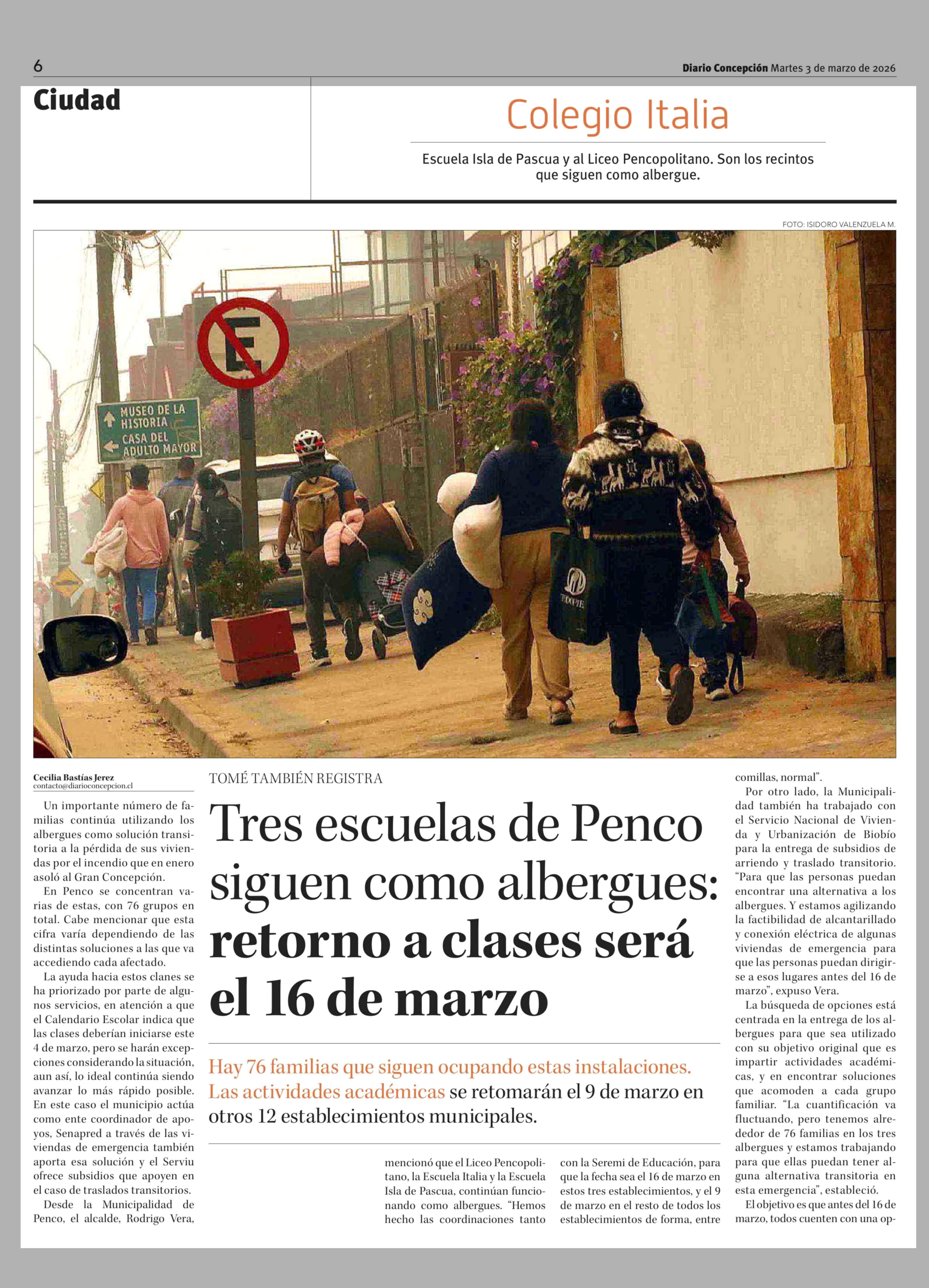 Título: Tres escuelas de Penco siguen como albergues: retorno a clases será el 16 de marzo