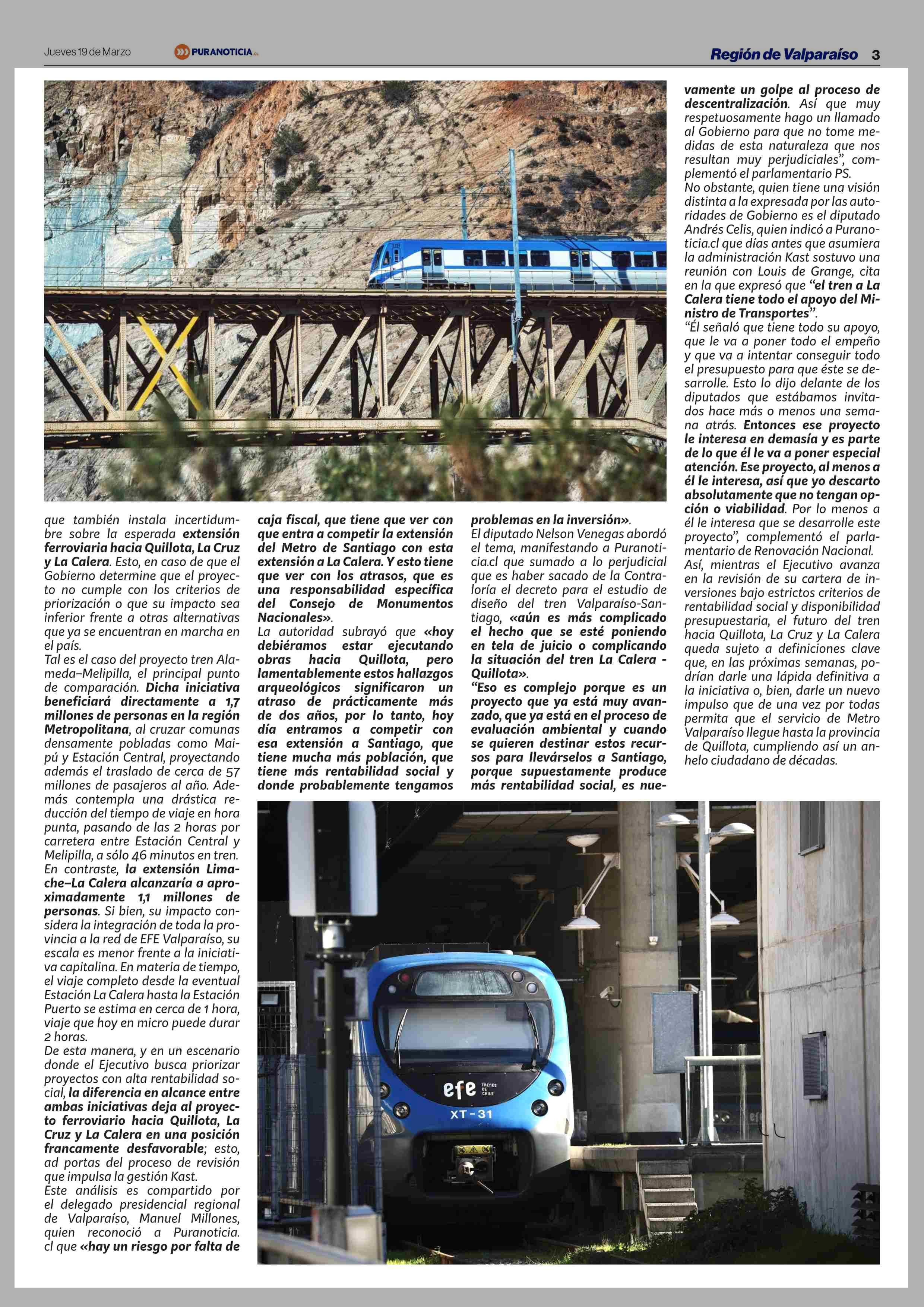 Título: En riesgo tren a Quillota y La Calera: revisión del Gobierno de Kast a rentabilidad social de proyectos pone en duda su extensión