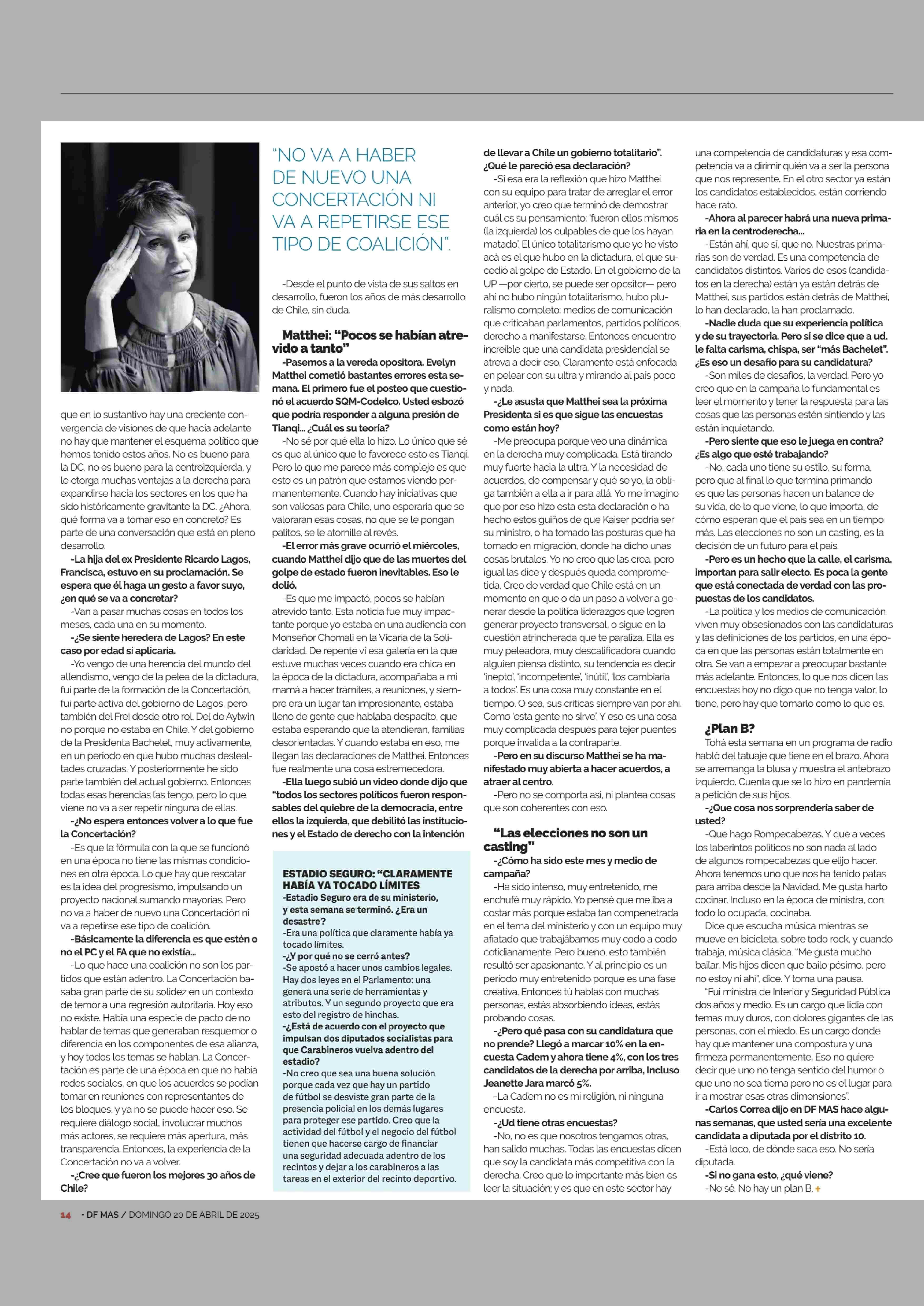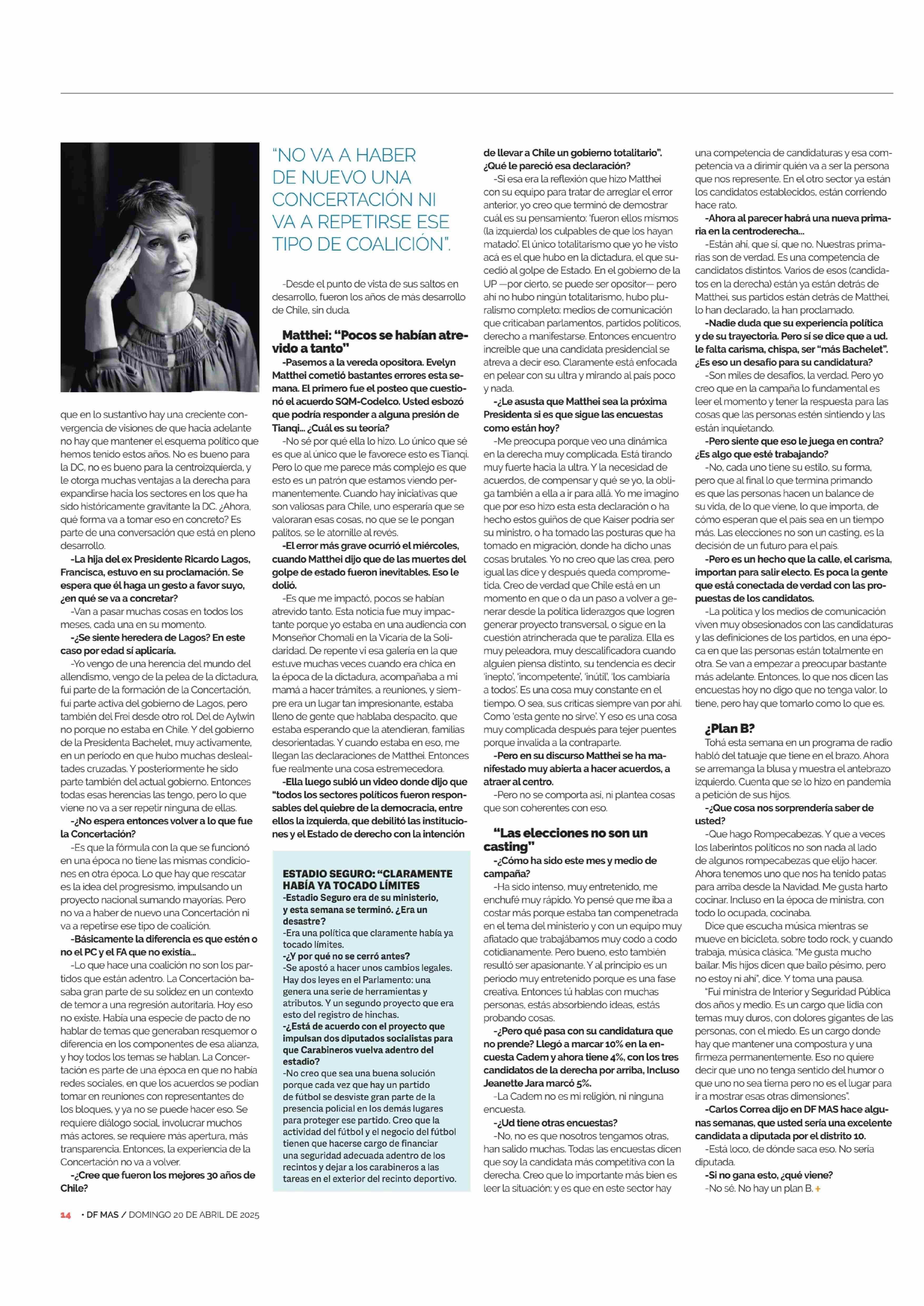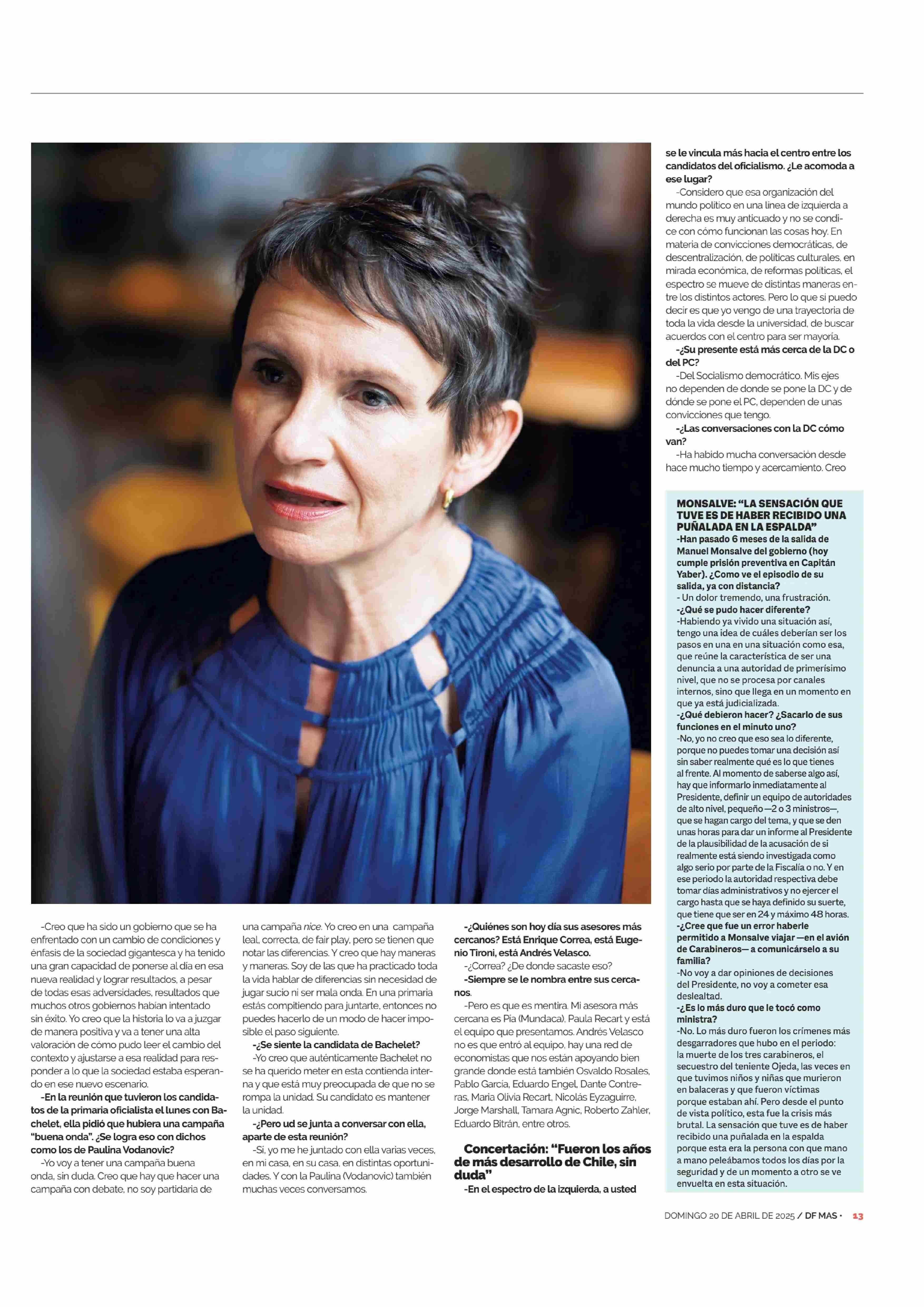“NO HAY NINGUNA POSIBILIDAD DE VER LO QUE VIENE COMO UNA CONTINUIDAD” 20-04-2025 Diario Financiero |