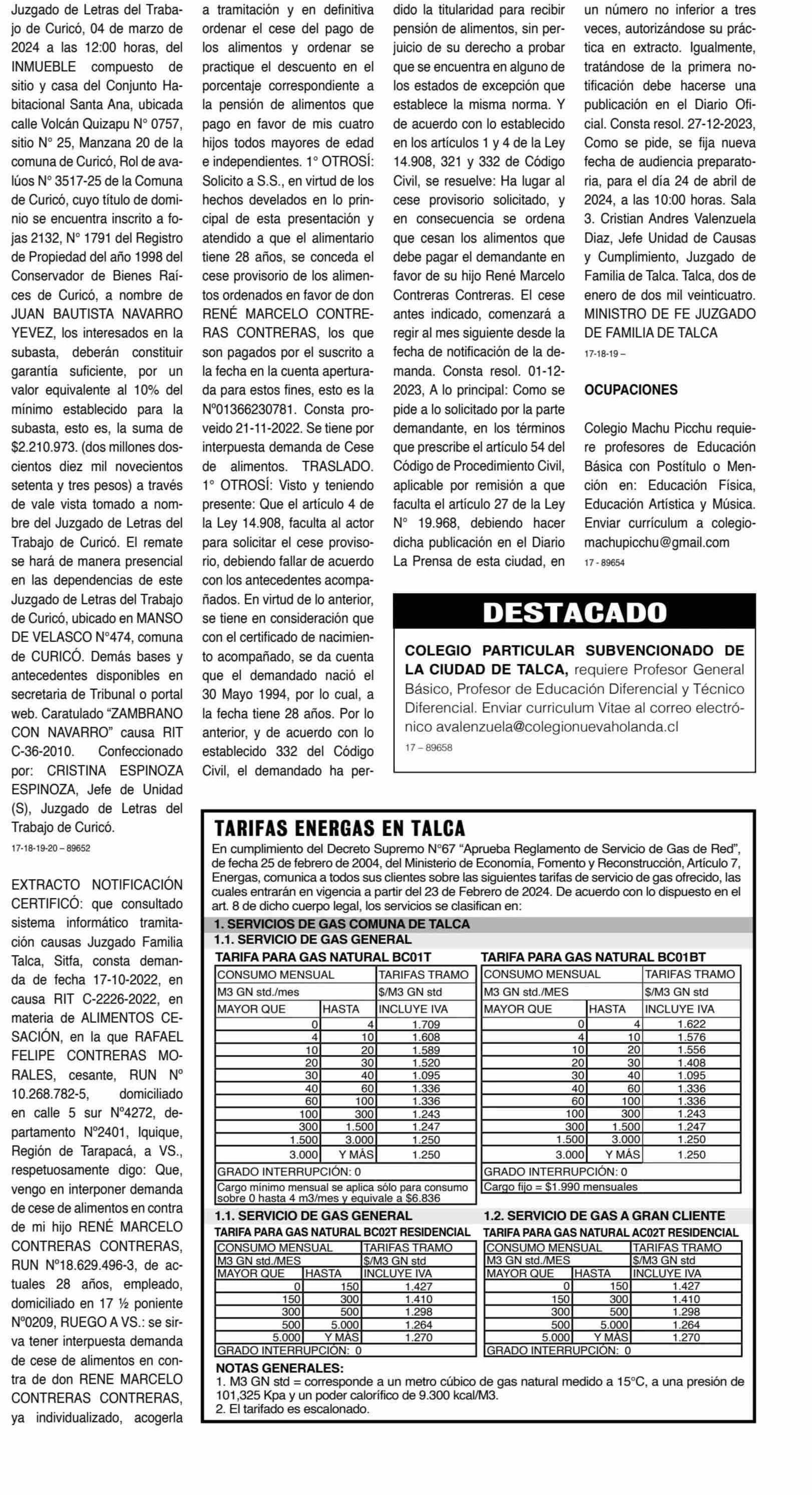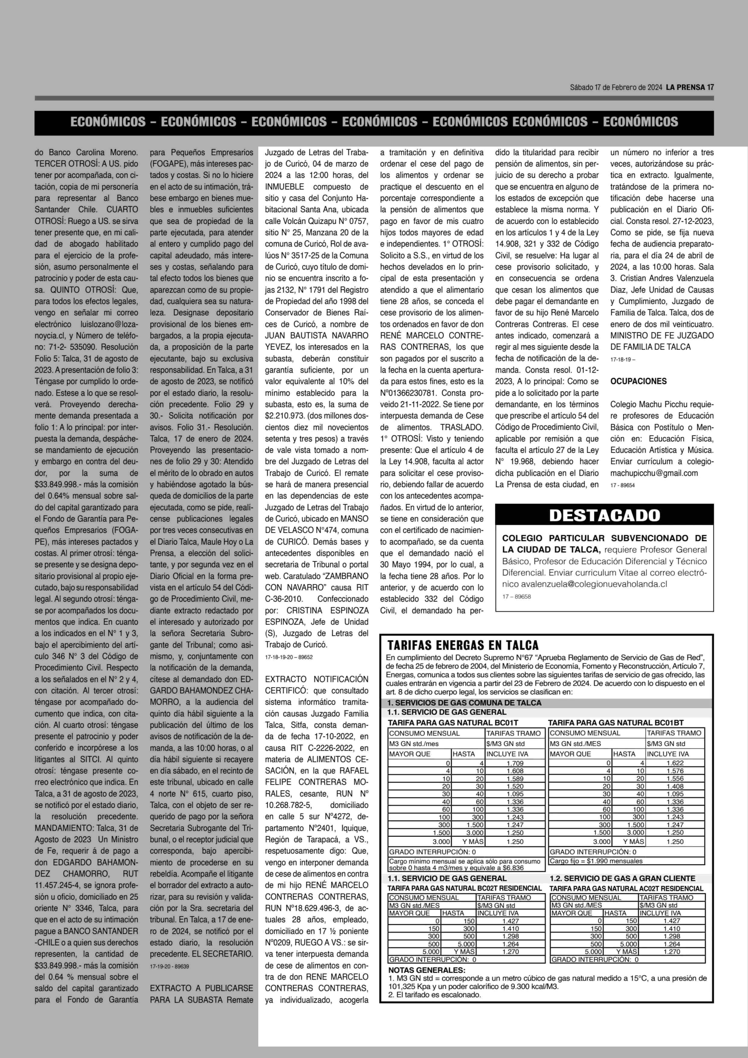 EXTRACTOS: 17-02-2024 La Prensa de Curicó |