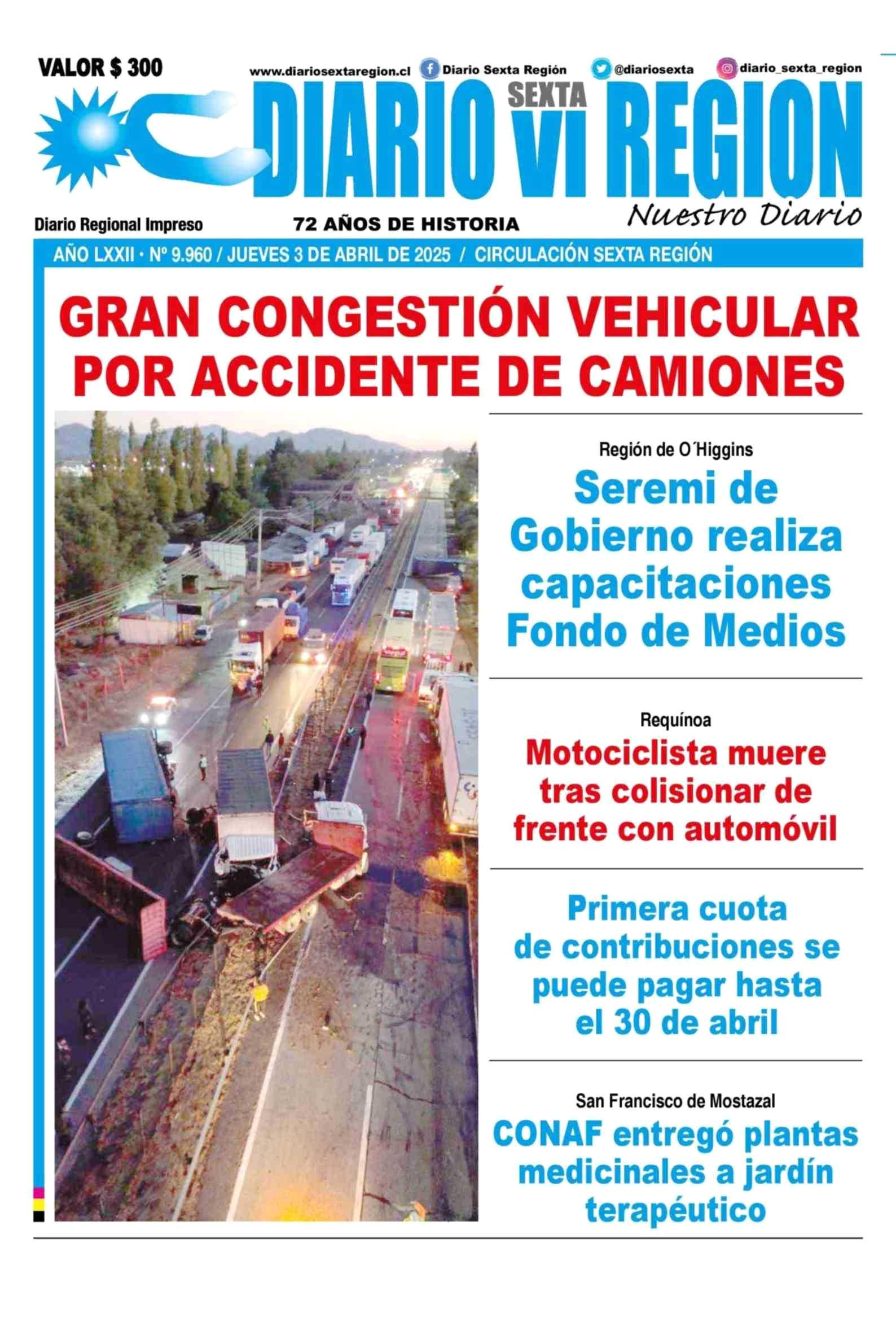PORTADA DIARIO VI REGIÓN CHILE 03-04-2025 Diario VI Región |