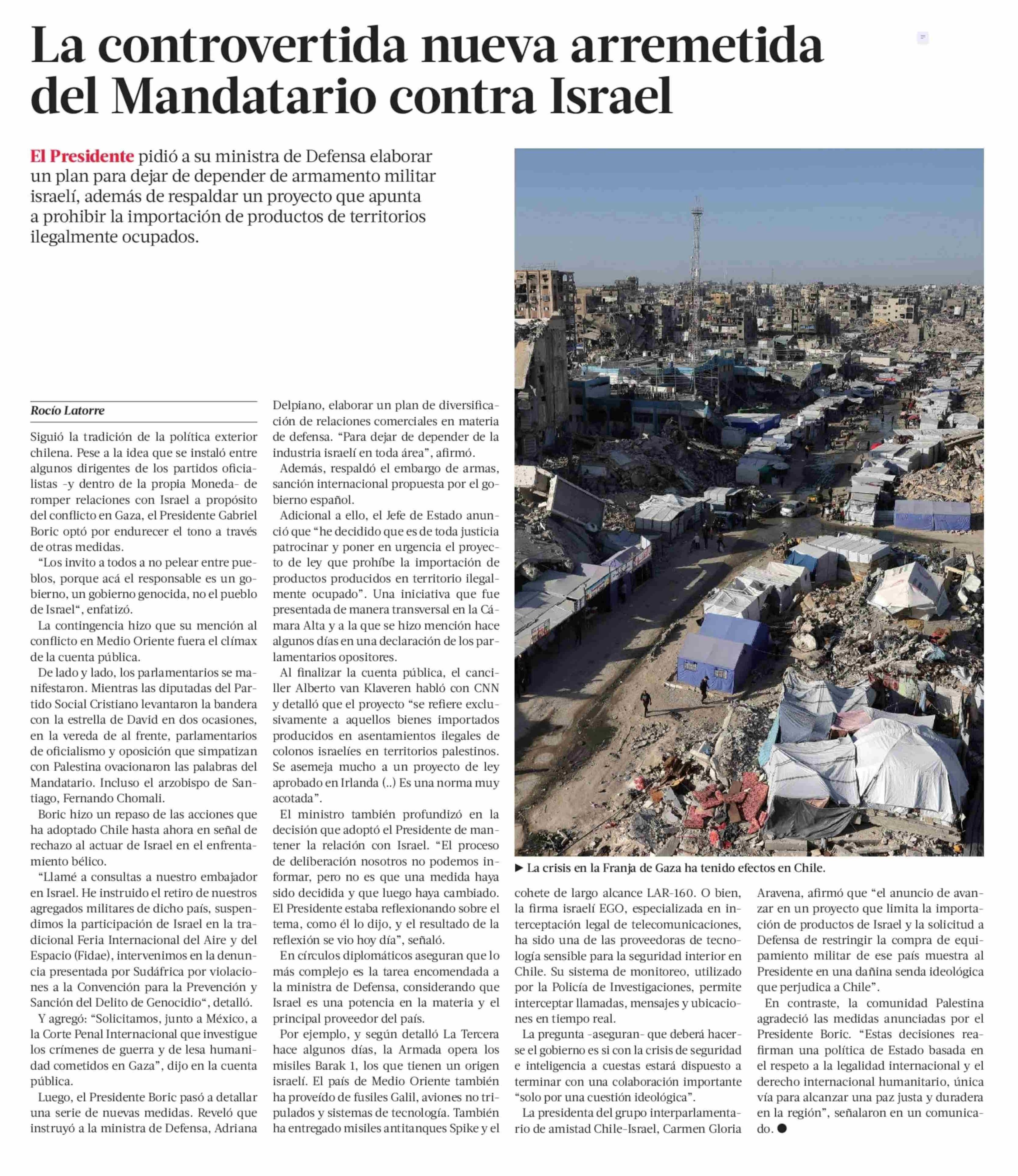La controvertida nueva arremetida del Mandatario contra Israel 02-06-2025 La Tercera |