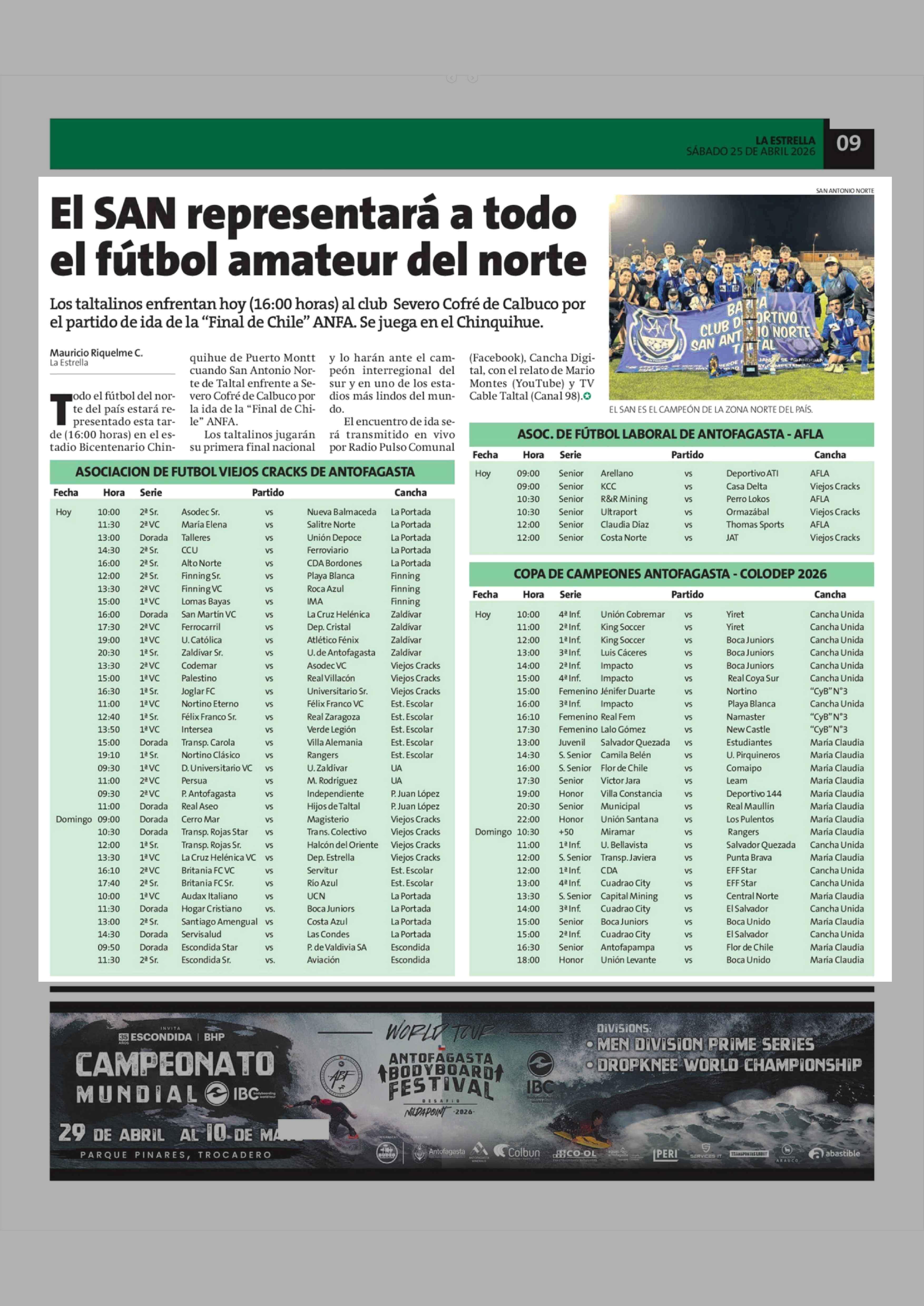El SAN representará a todo el fútbol amateur del norte 25-04-2026 La Estrella de Antofagasta |