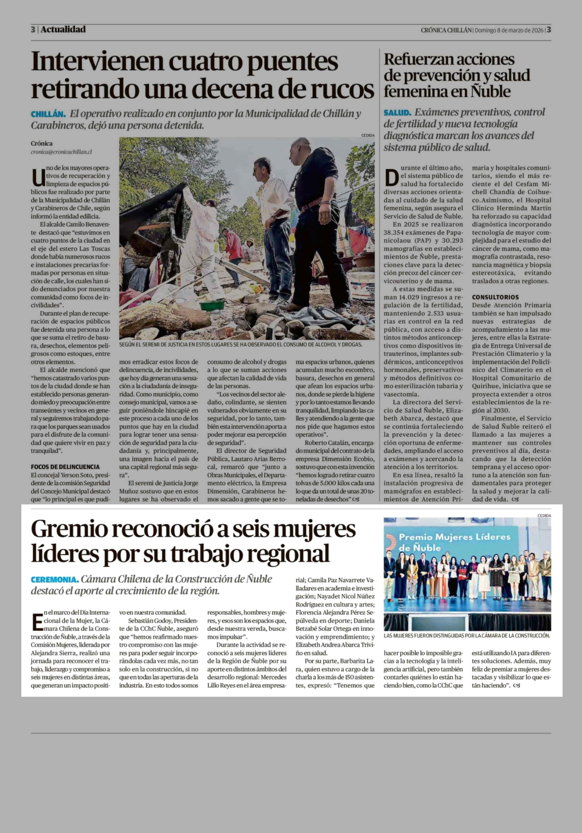 Fecha: 08-03-2026 Sector: Noticia general Región: Región del Ñuble