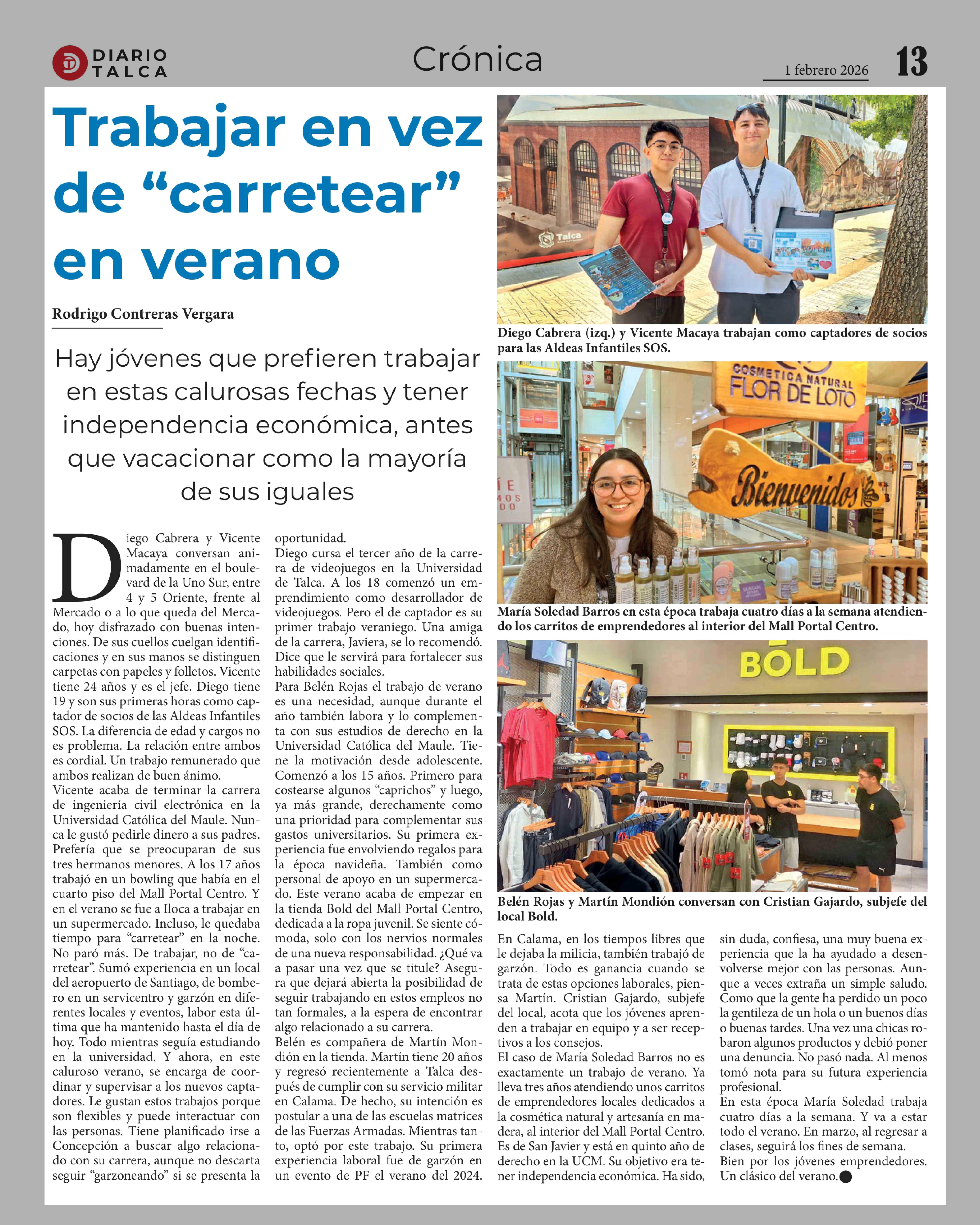 Trabajar en vez de "carretear" en verano 01-02-2026 Diario Talca |