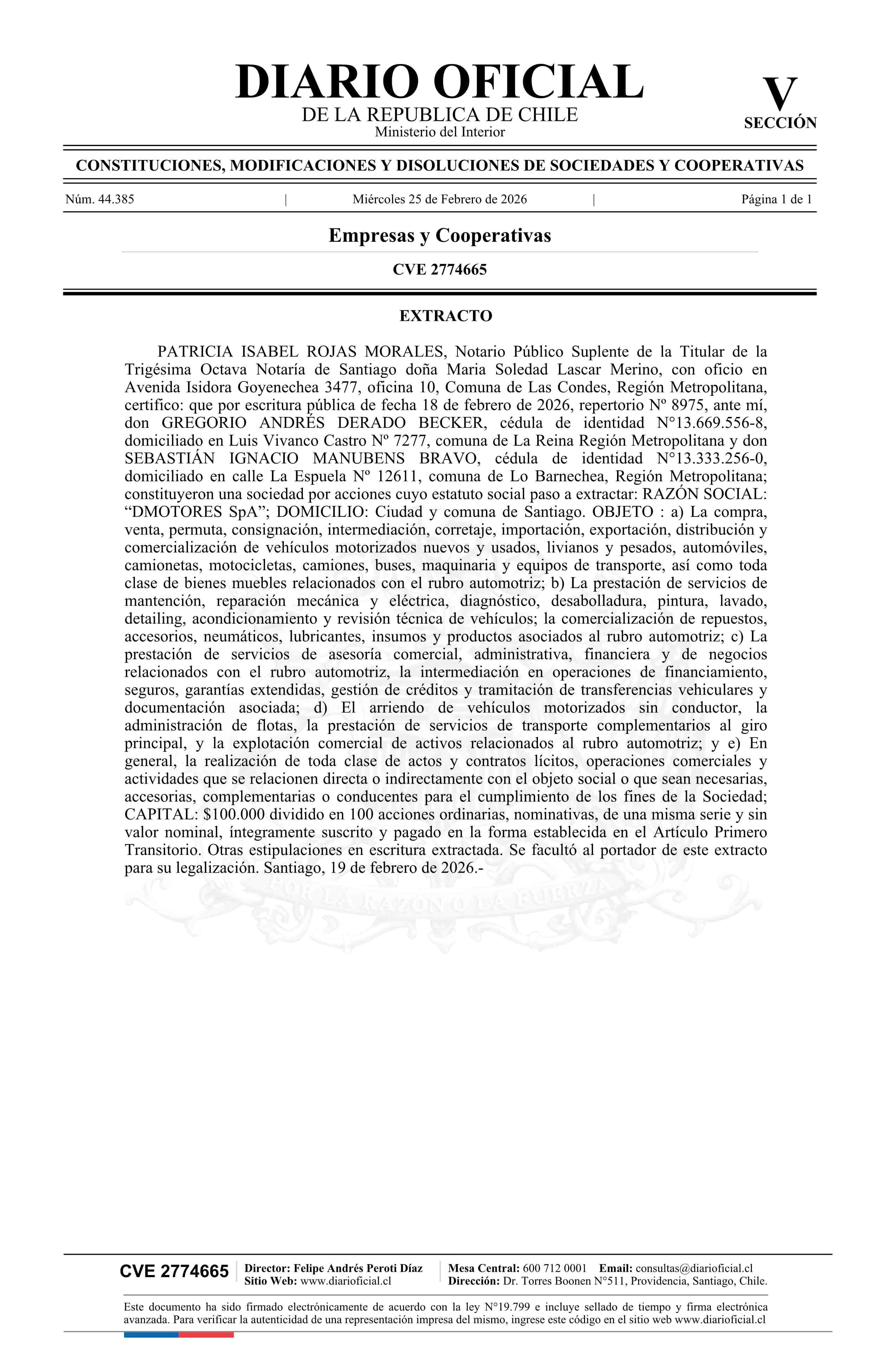 Título: DMOTORES SpA