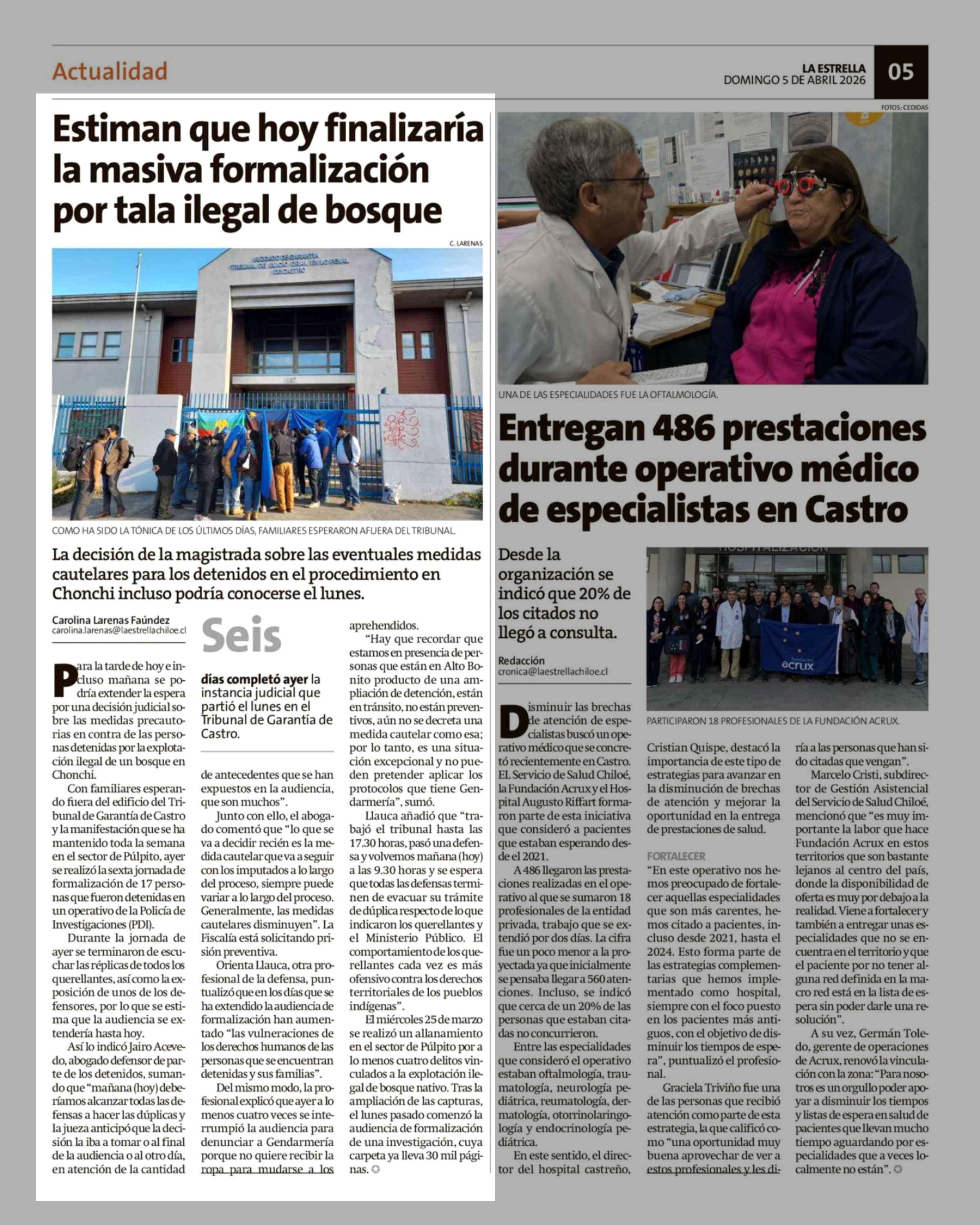 Estiman que hoy finalizaría la masiva formalización por tala ilegal de bosque 05-04-2026 La Estrella de Chiloé |