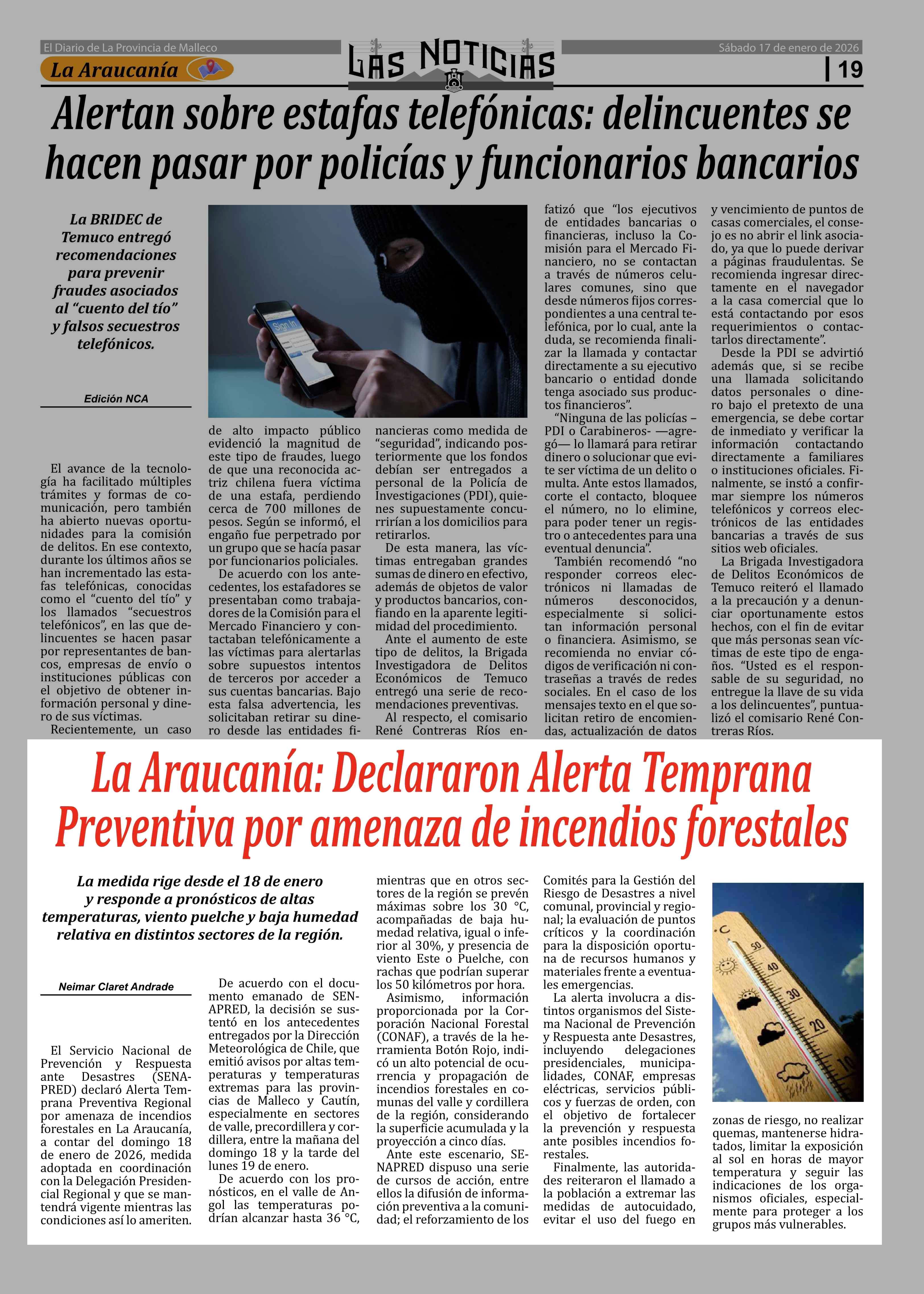 Fecha: 17-01-2026 Sector: Noticia general Región: Región de la Araucanía