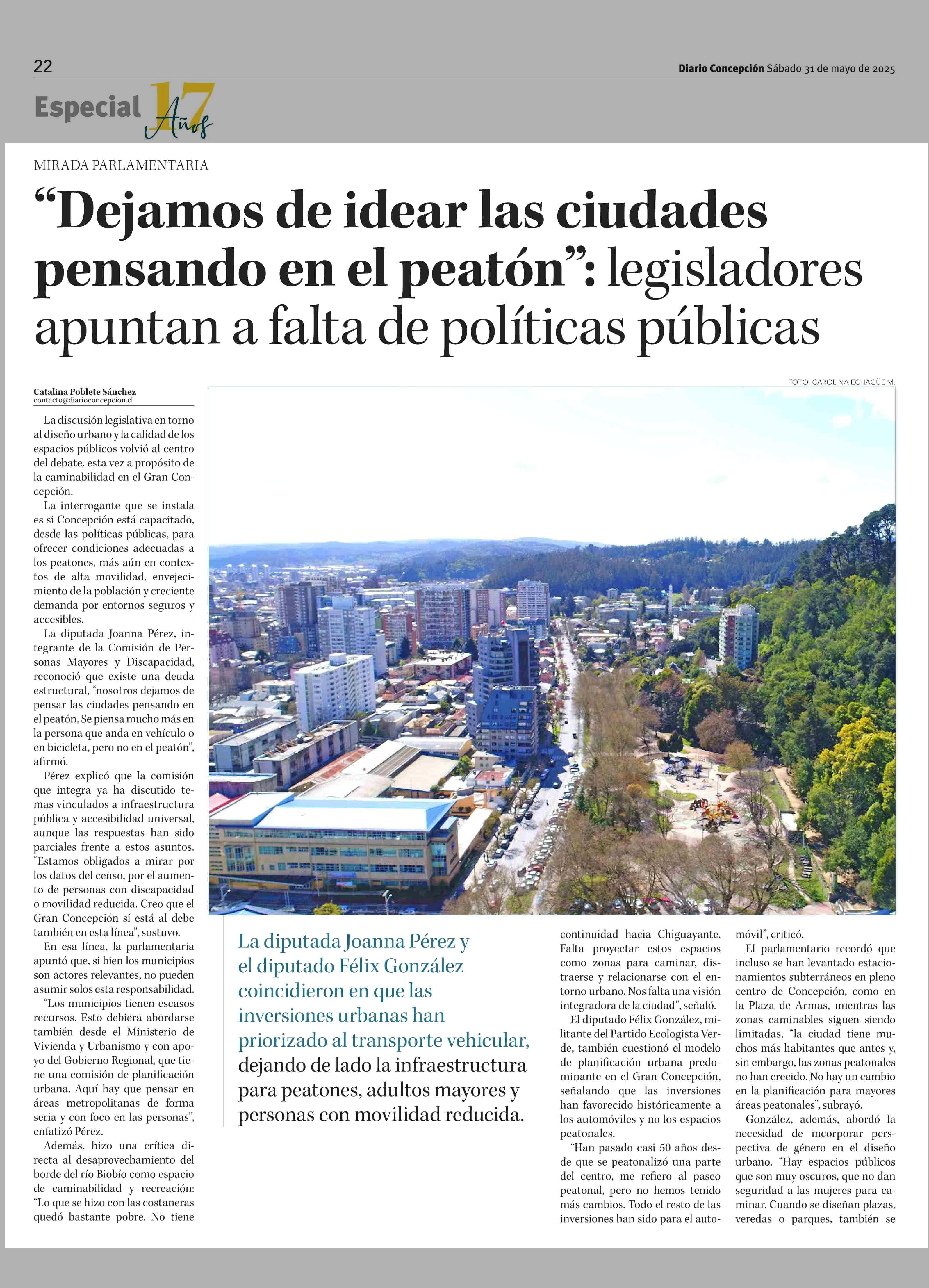 "Dejamos de idear las ciudades pensando en el peatón": legisladores apuntan a falta de políticas públicas 31-05-2025 Diario Concepción |