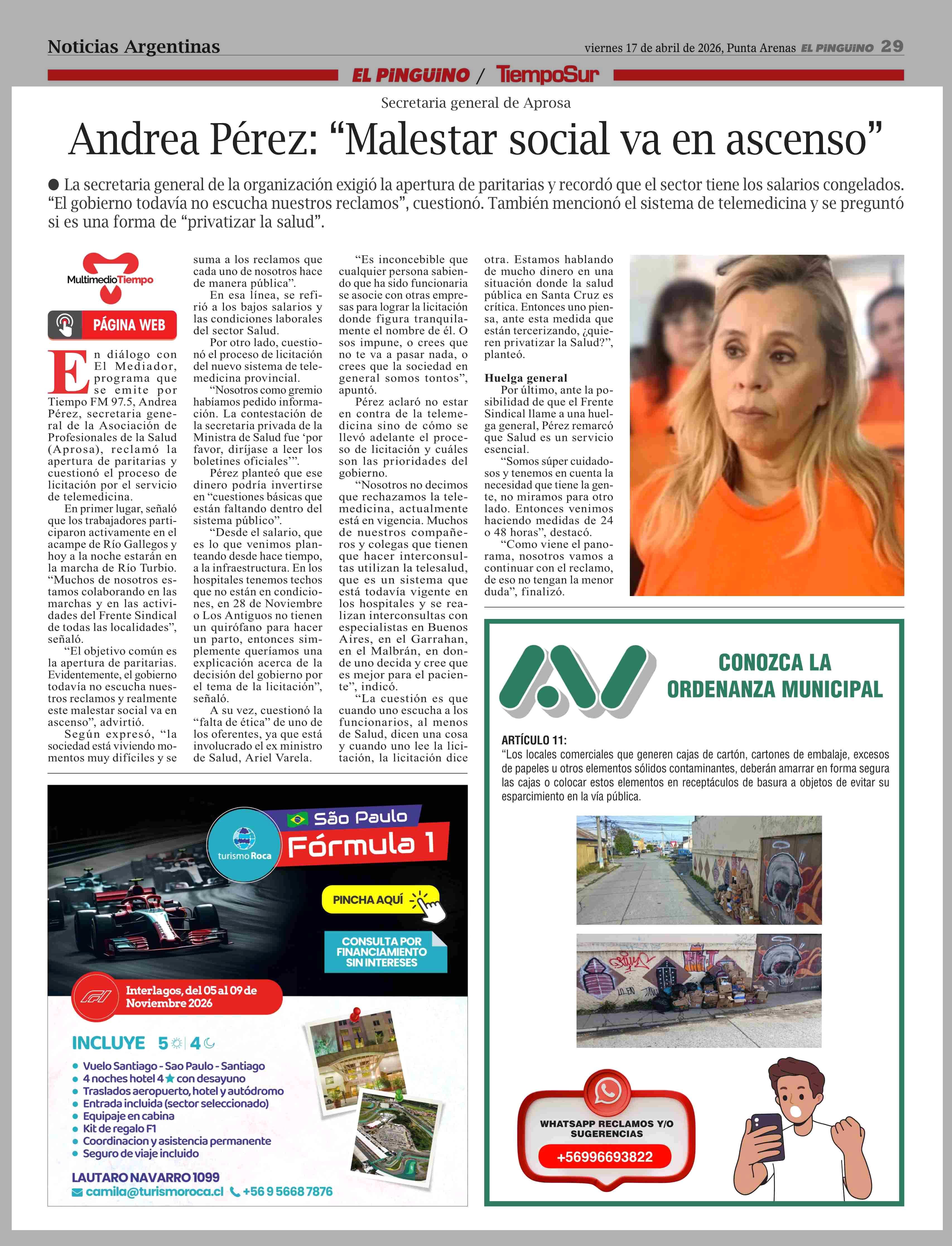 Andrea Pérez: “Malestar social va en ascenso” 17-04-2026 El Pingüino |
