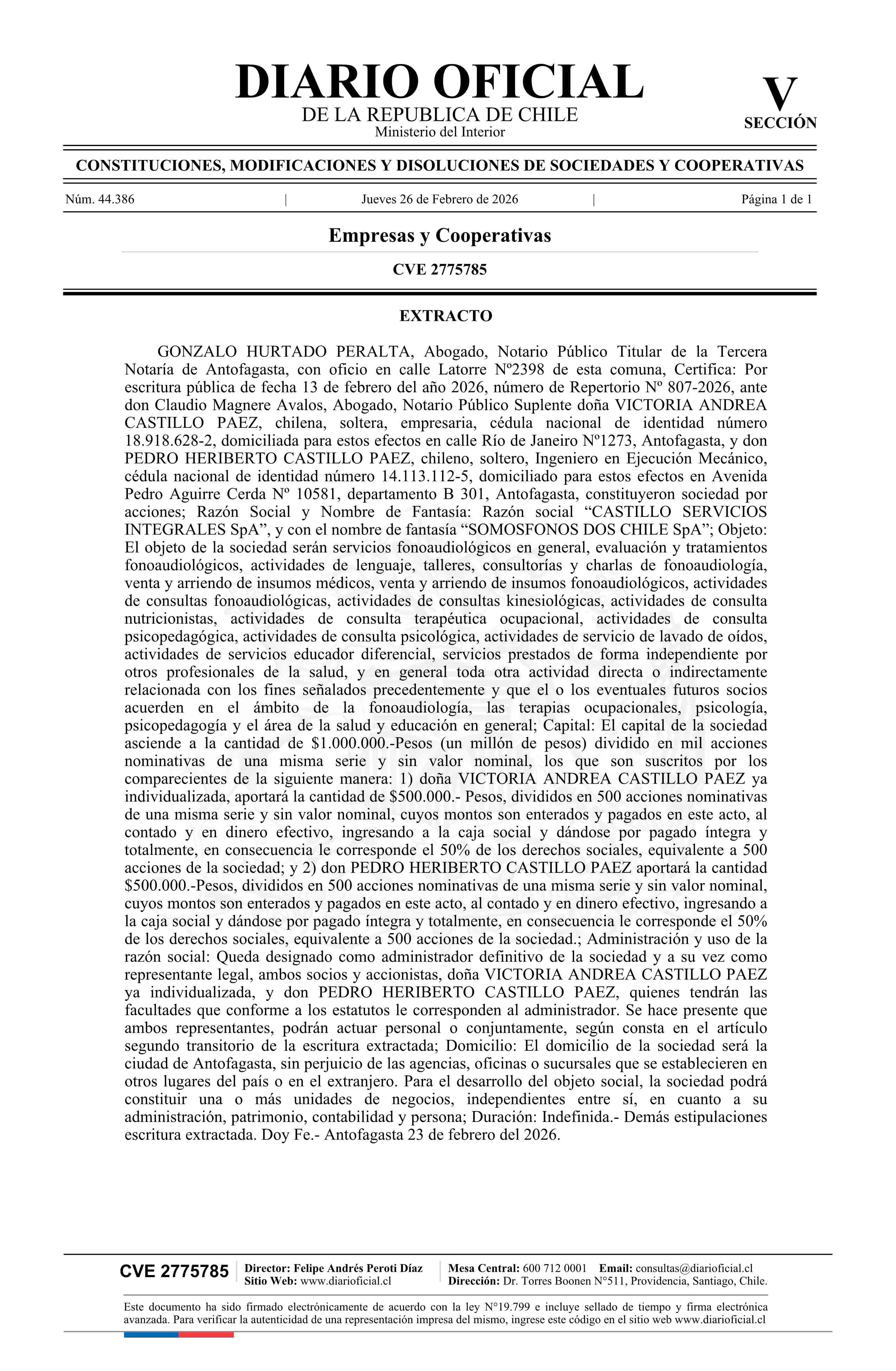 Título: CASTILLO SERVICIOS INTEGRALES SpA