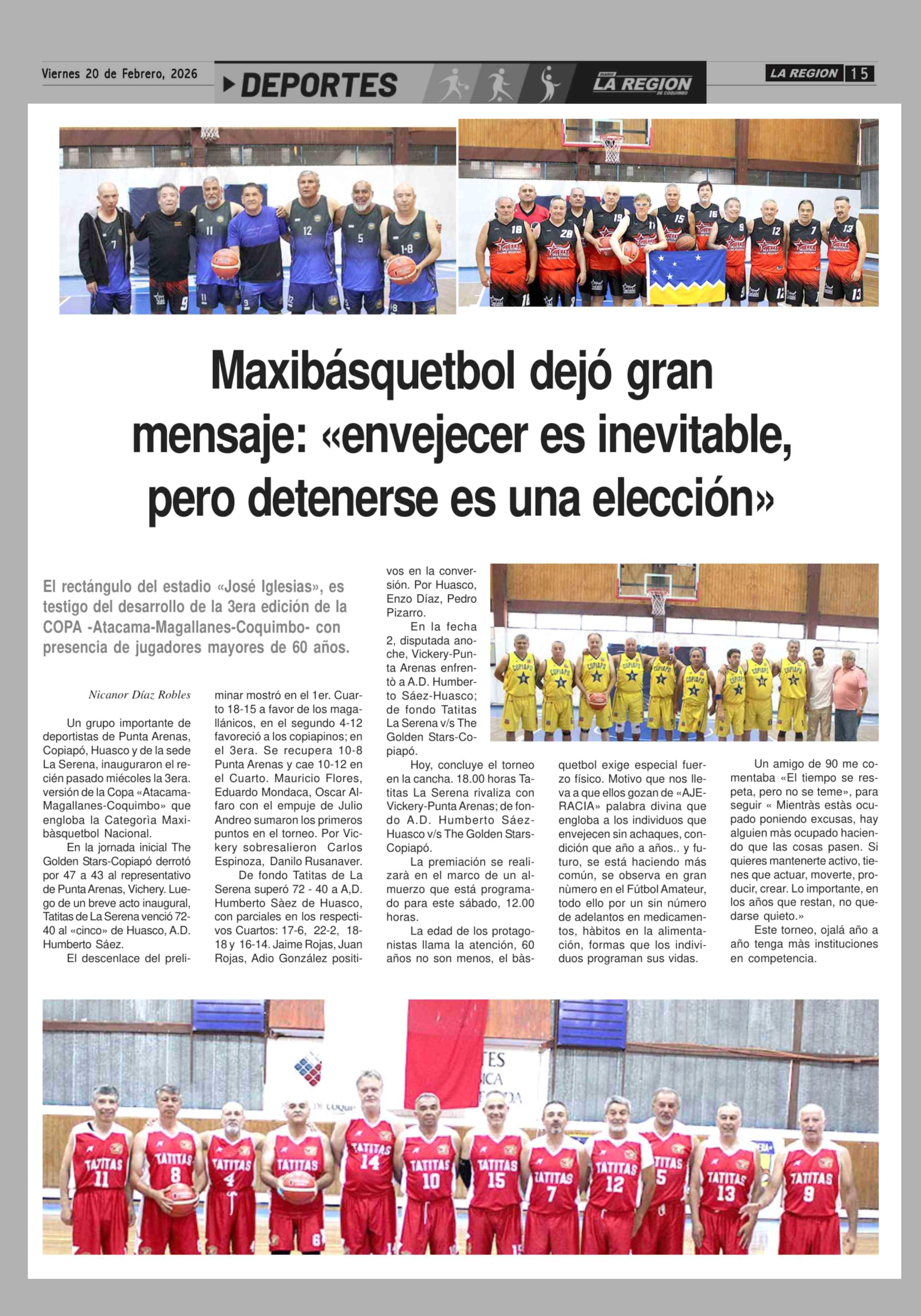 Maxibásquetbol dejó gran mensaje: «envejecer es inevitable, pero detenerse es una elección» 20-02-2026 Diario la Región |