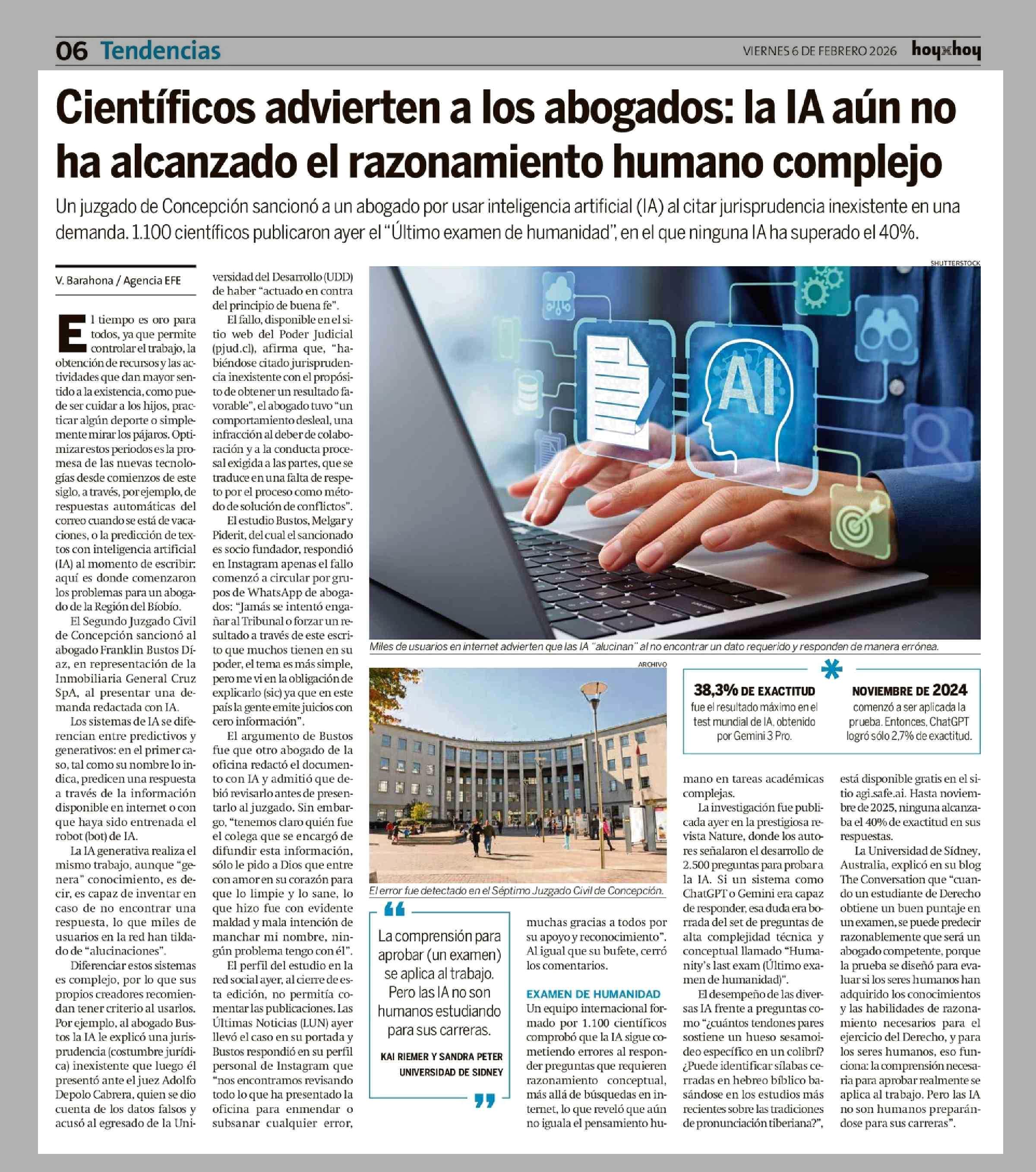 Científicos advierten a los abogados: la IA aún no ha alcanzado el razonamiento humano complejo 06-02-2026 Hoy x Hoy |