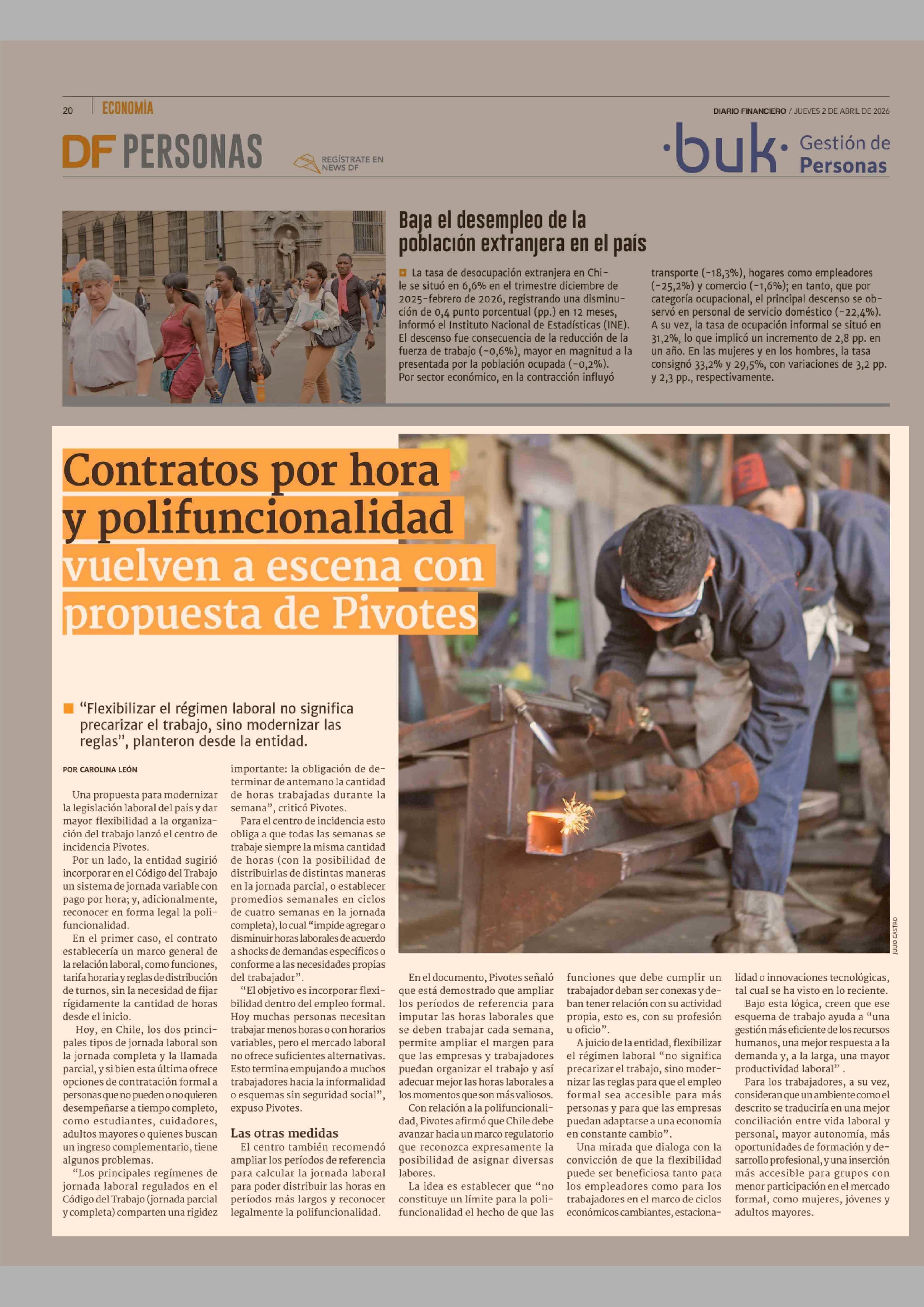 Contratos por hora y polifuncionalidad vuelven a escena con propuesta de Pivotes 02-04-2026 Diario Financiero |