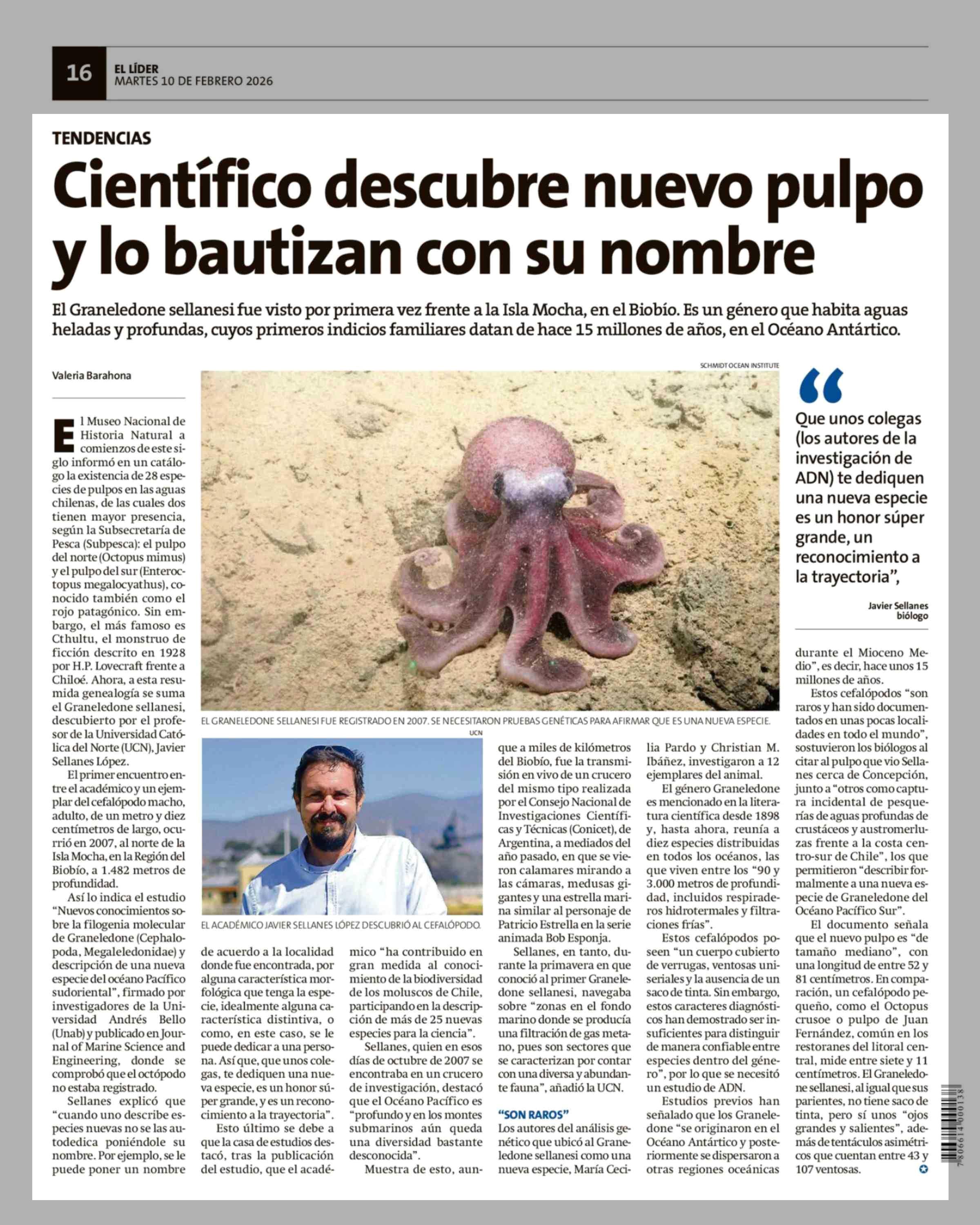 Científico descubre nuevo pulpo y lo bautizan con su nombre 10-02-2026 El Líder |