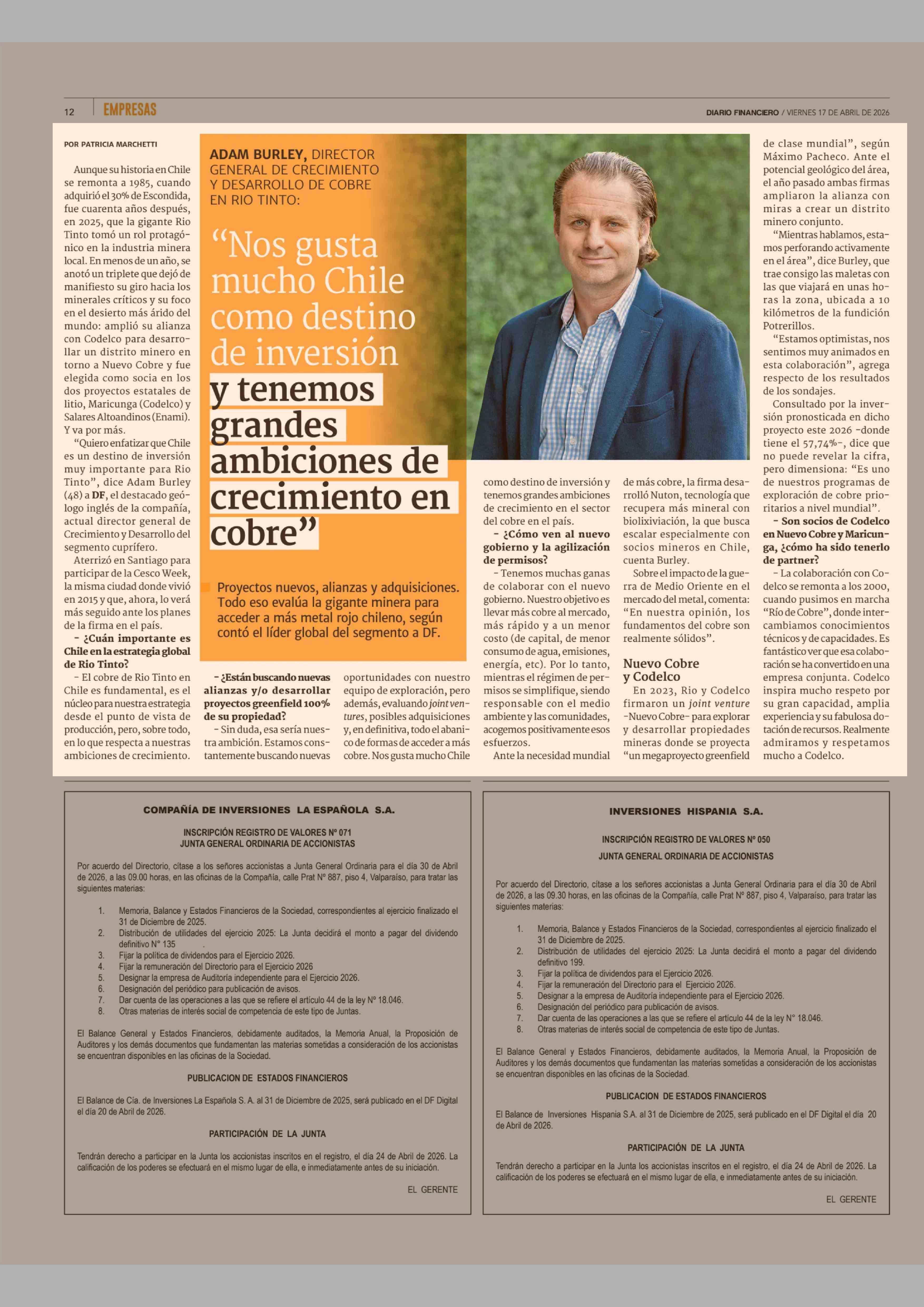Fuente: Diario Financiero (Diario Financiero) Página(s): 12