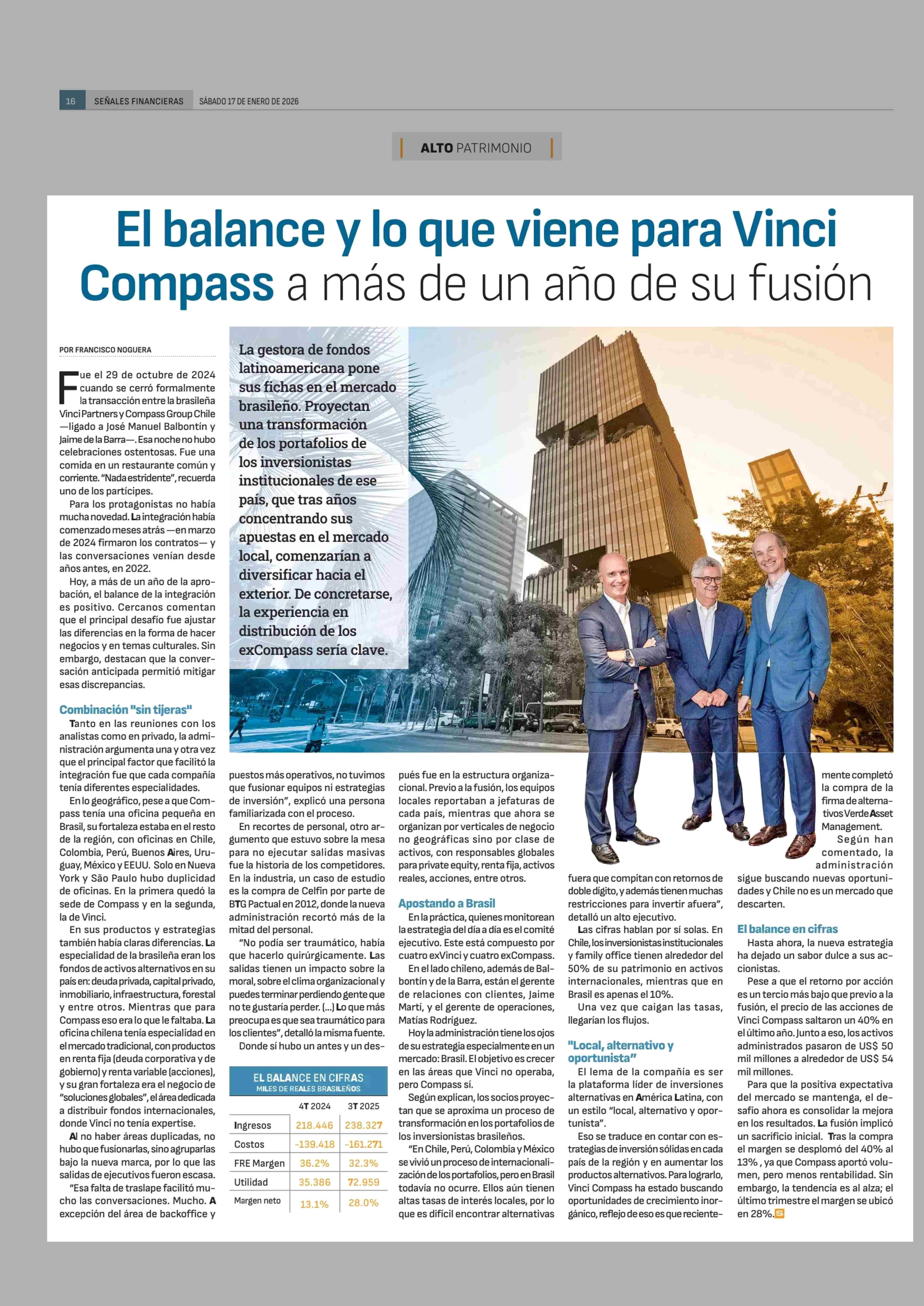 El balance y lo que viene para Vinci Compass a más de un año de su fusión 17-01-2026 Diario Financiero |
