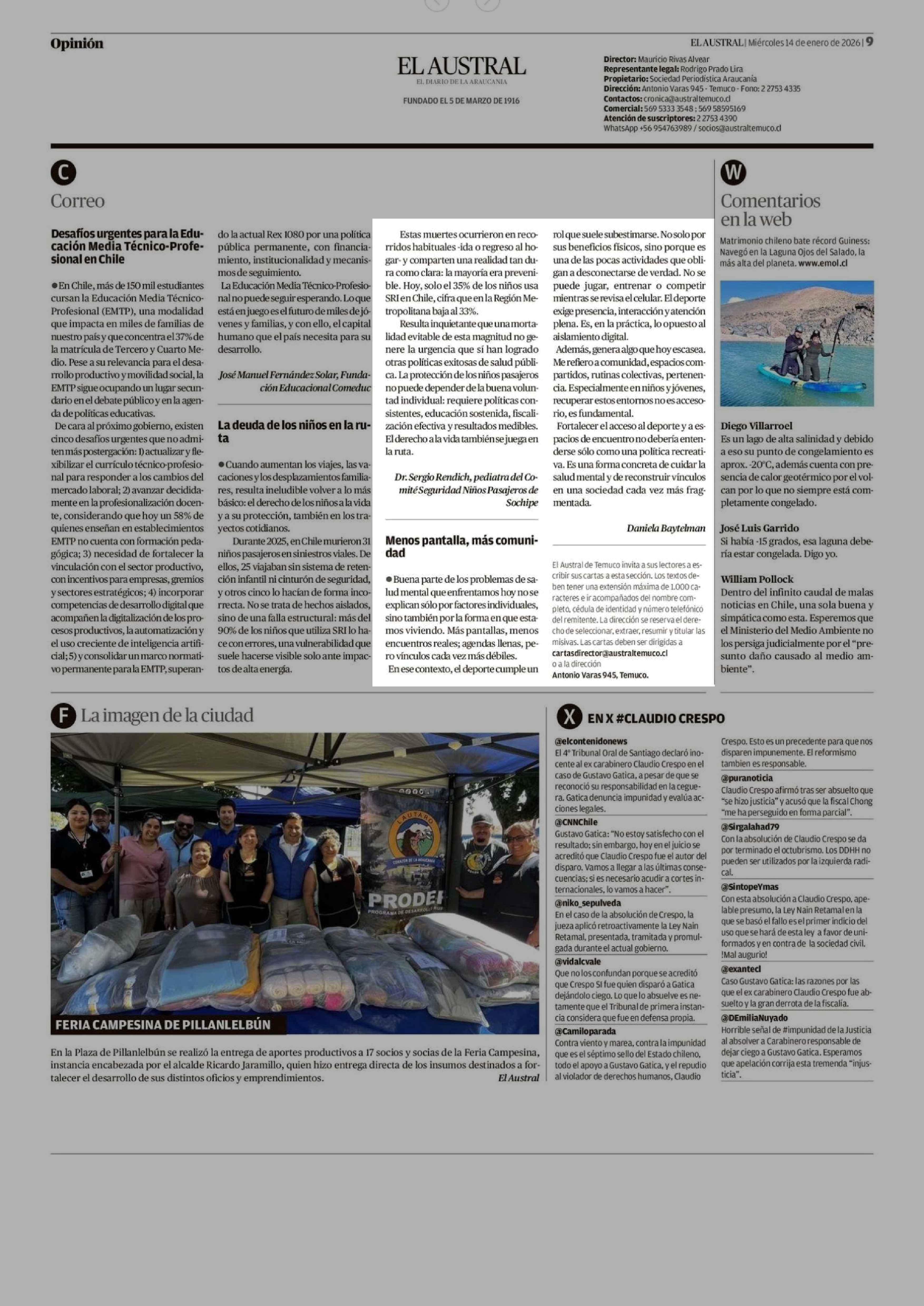 Cartas: Menos pantalla, más comunidad 14-01-2026 El Austral de la Araucanía |