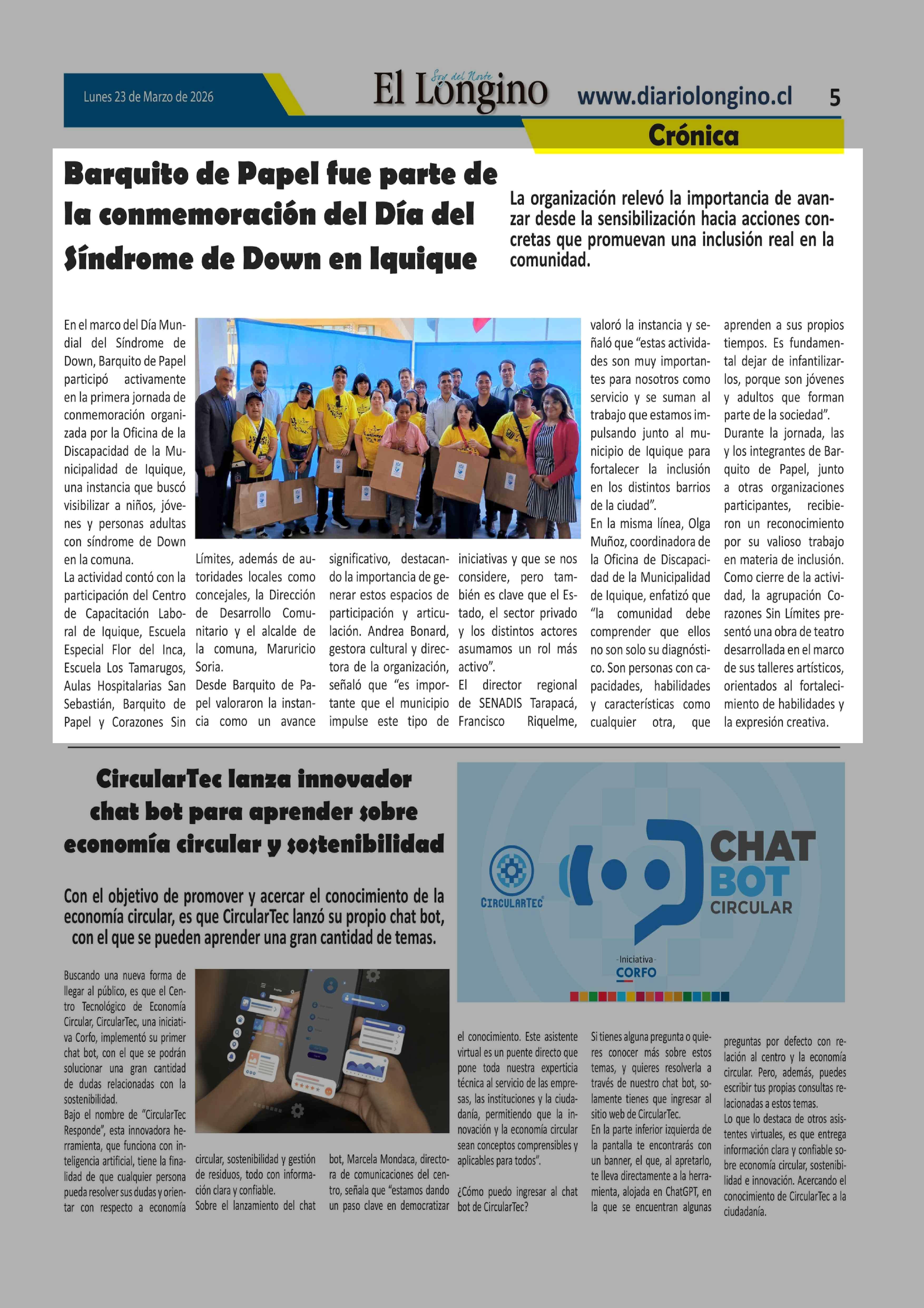 Barquito de Papel fue parte de la conmemoración del Día del Síndrome de Down en Iquique 23-03-2026 El Longino |