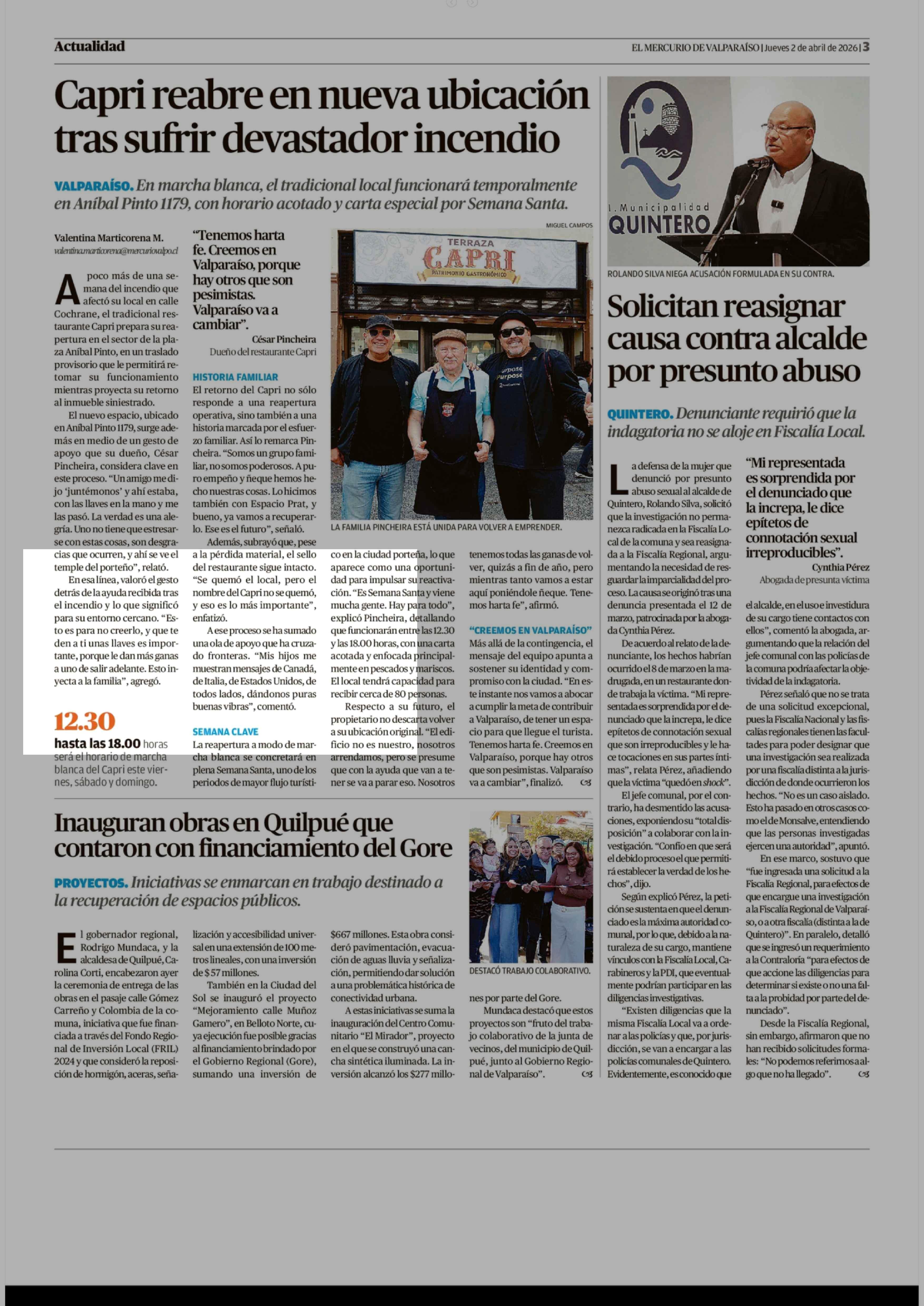 Inauguran obras en Quilpué que contaron con financiamiento del Gore 02-04-2026 El Mercurio de Valparaíso |