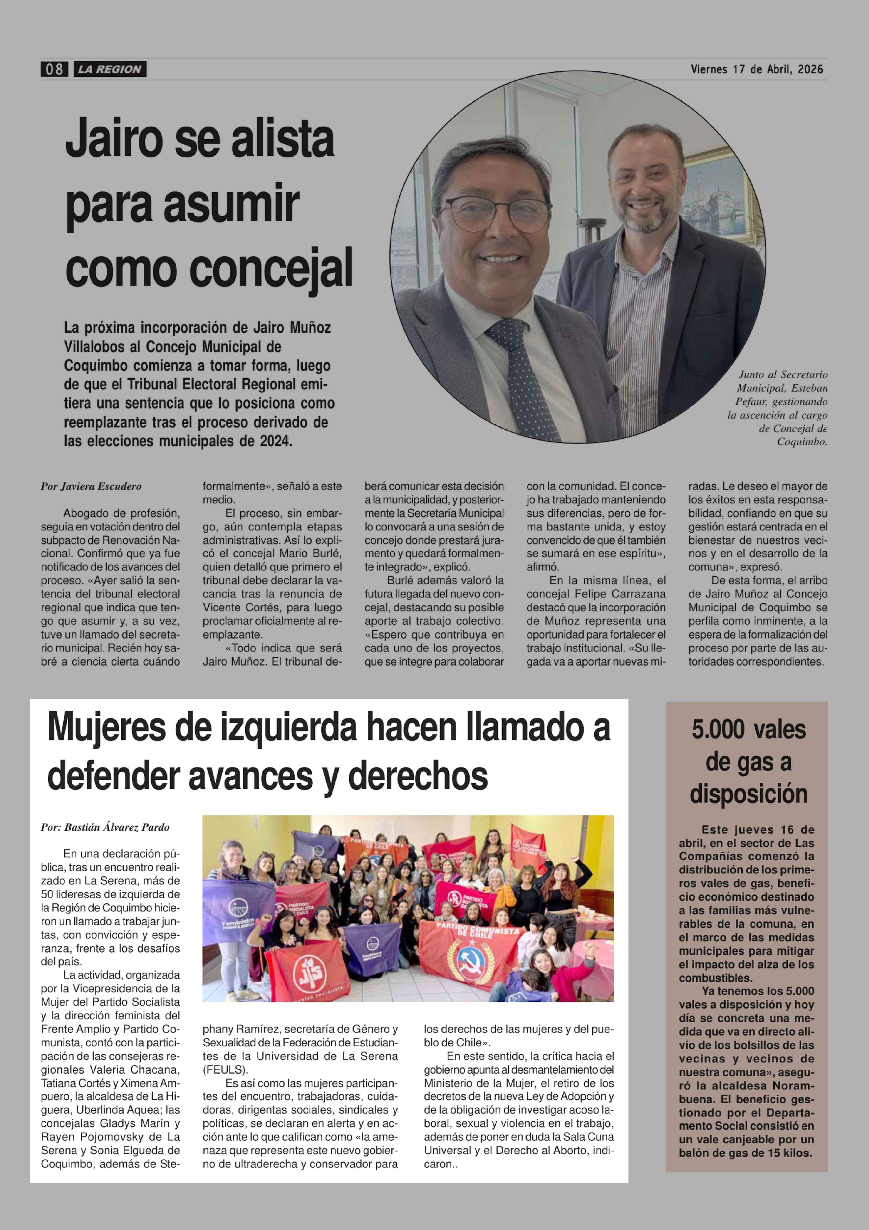 | Fecha: | 17-04-2026 | Sector: | Noticia general | Región: | Región de Coquimbo |