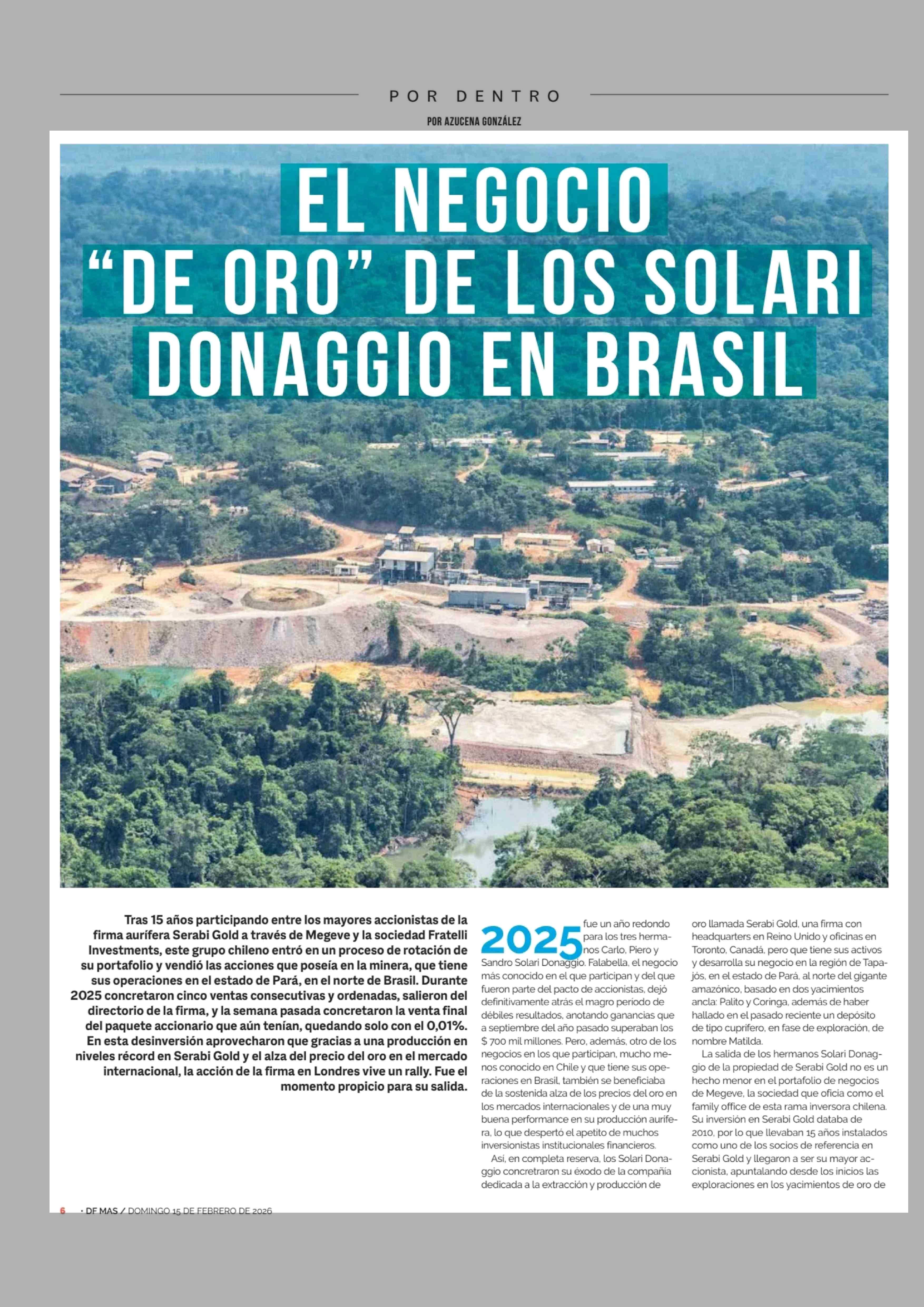EL NEGOCIO "DE ORO" DE LOS SOLARI DONAGGIO EN BRASIL 15-02-2026 Diario Financiero |