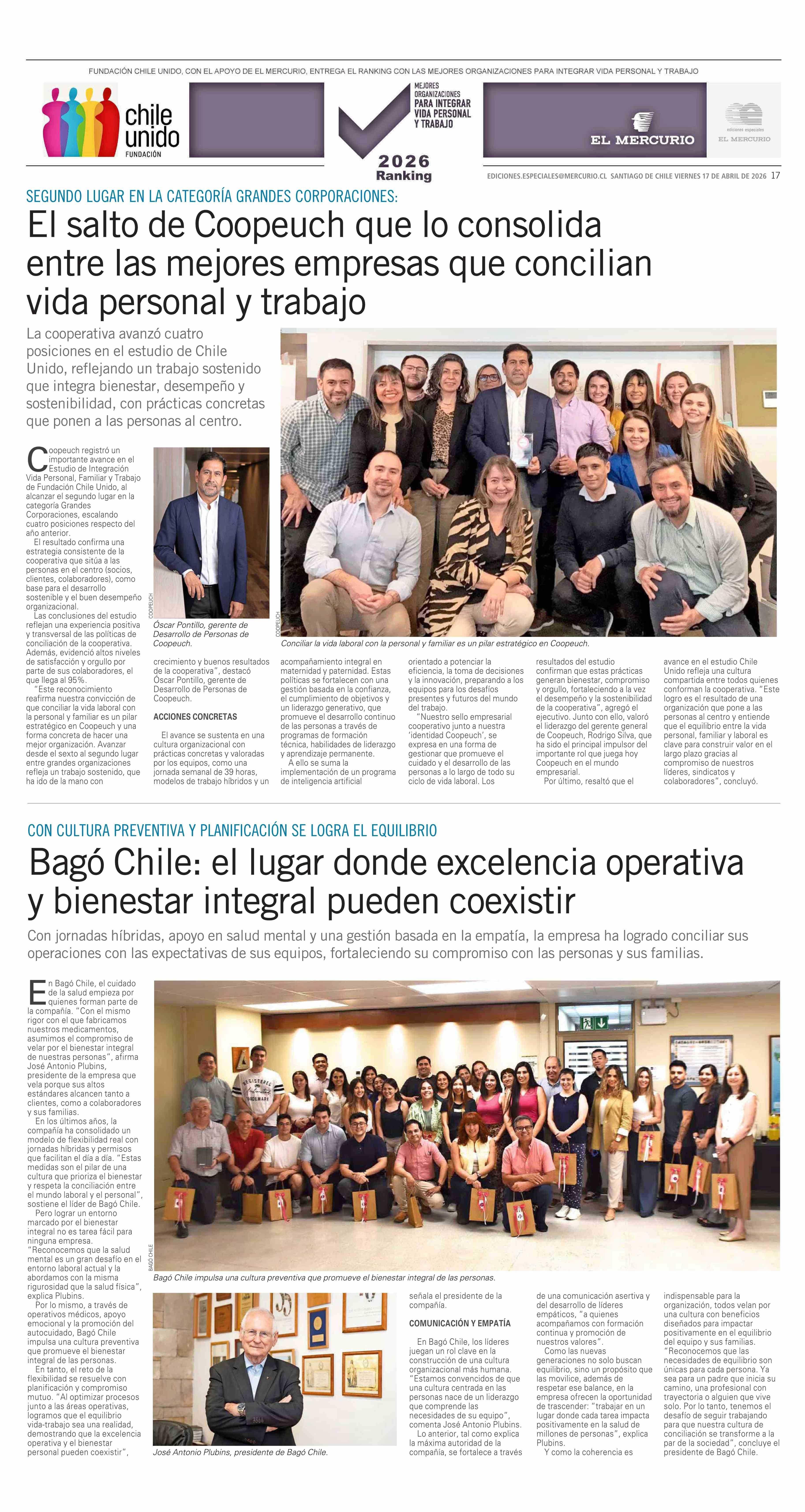 Bagó Chile: el lugar donde excelencia operativa y bienestar integral pueden coexistir 17-04-2026 El Mercurio |