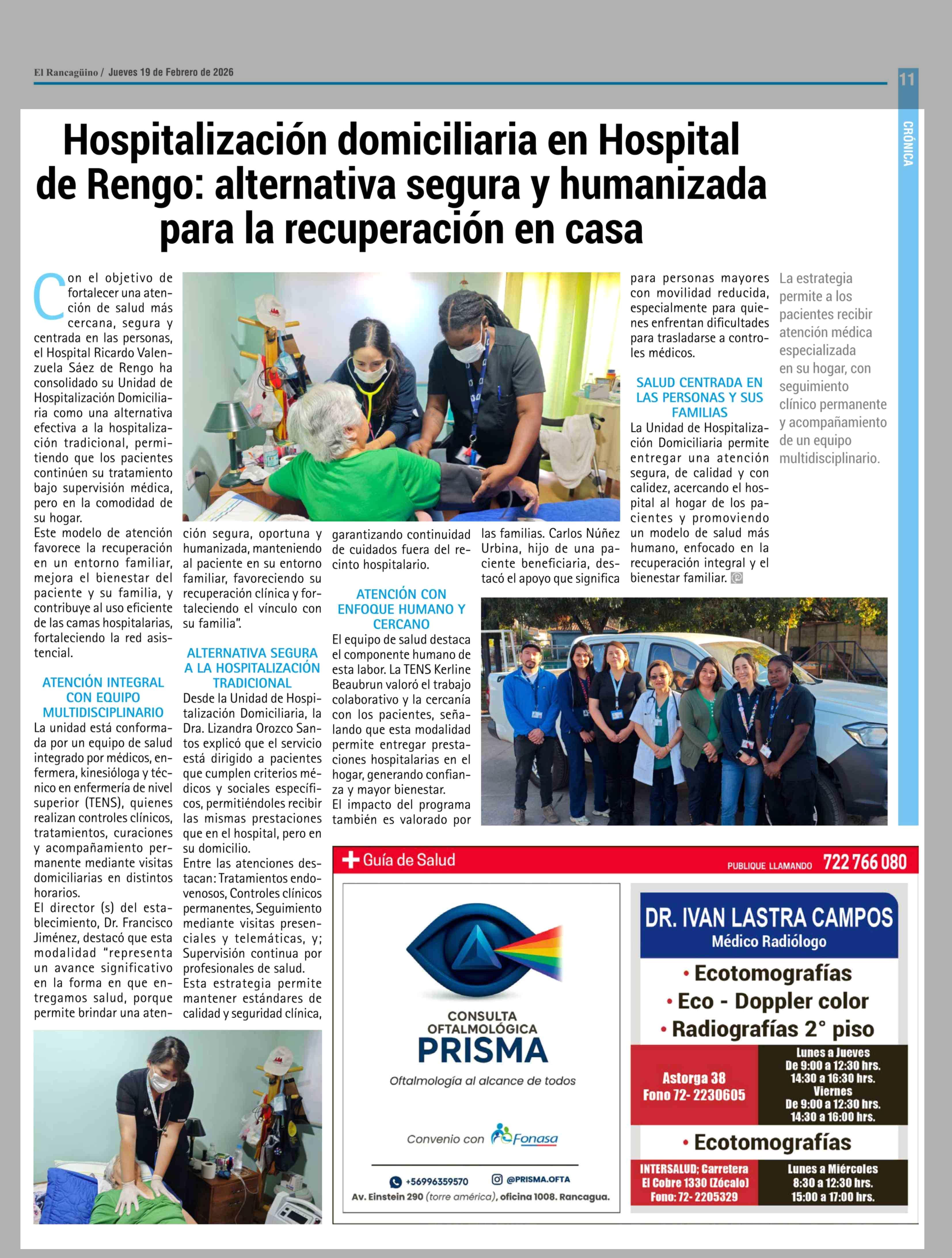 Hospitalización domiciliaria en Hospital de Rengo: alternativa segura y humanizada para la recuperación en casa