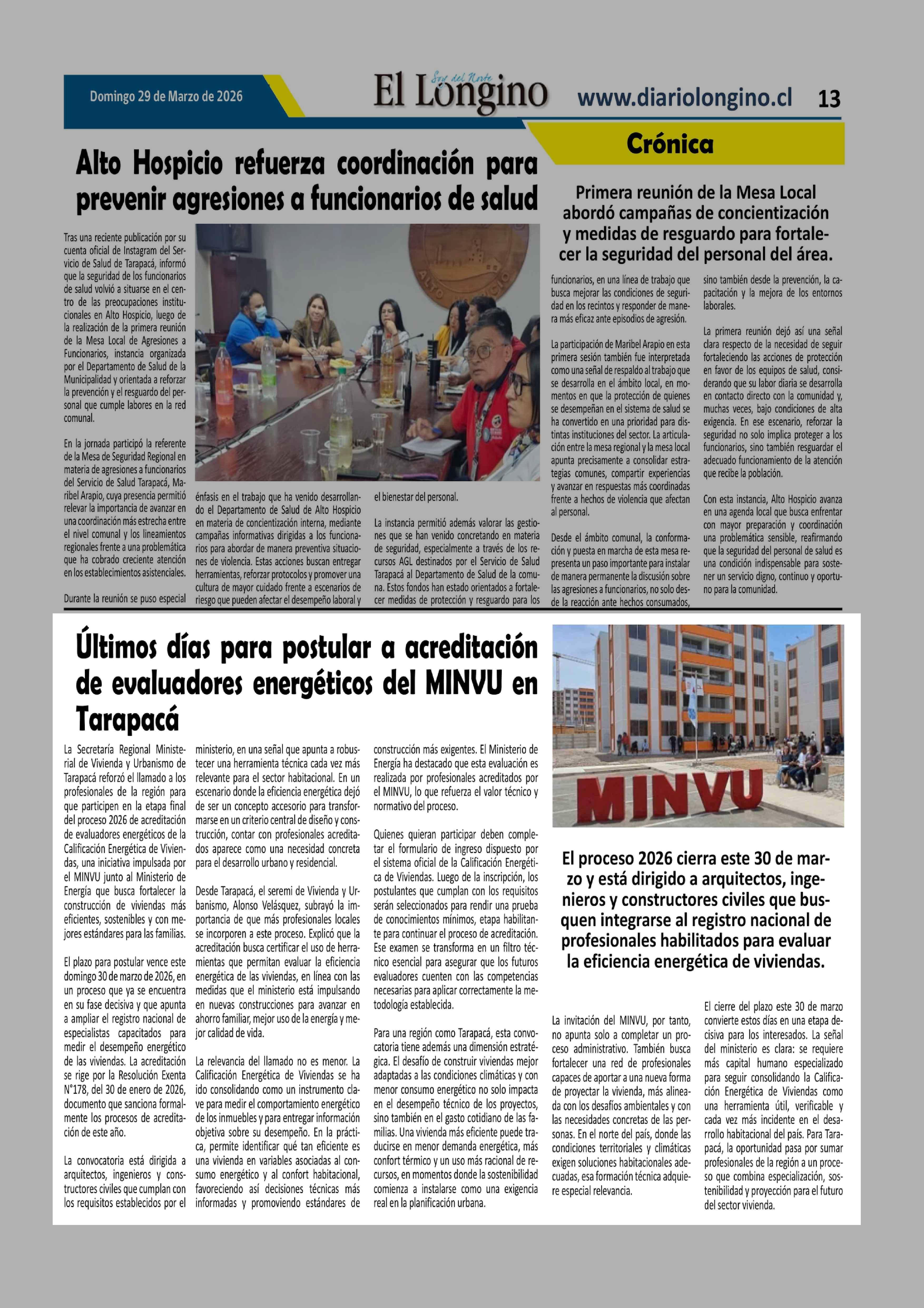 | Fecha: | 29-03-2026 | Sector: | Noticia general | Región: | Región de Tarapacá |