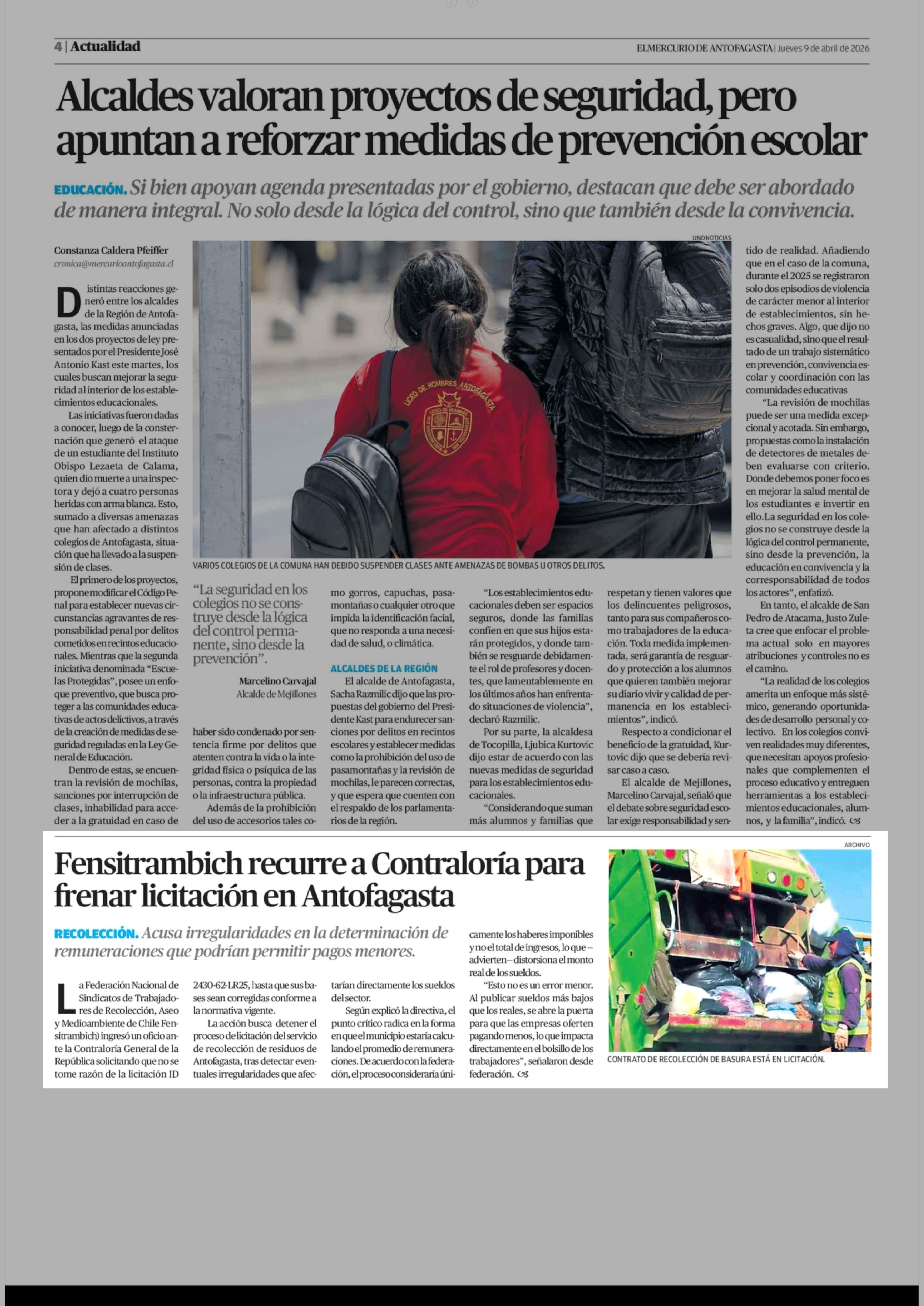 Fensitrambich recurre a Contraloría para frenar licitación en Antofagasta 09-04-2026 El Mercurio de Antofagasta |