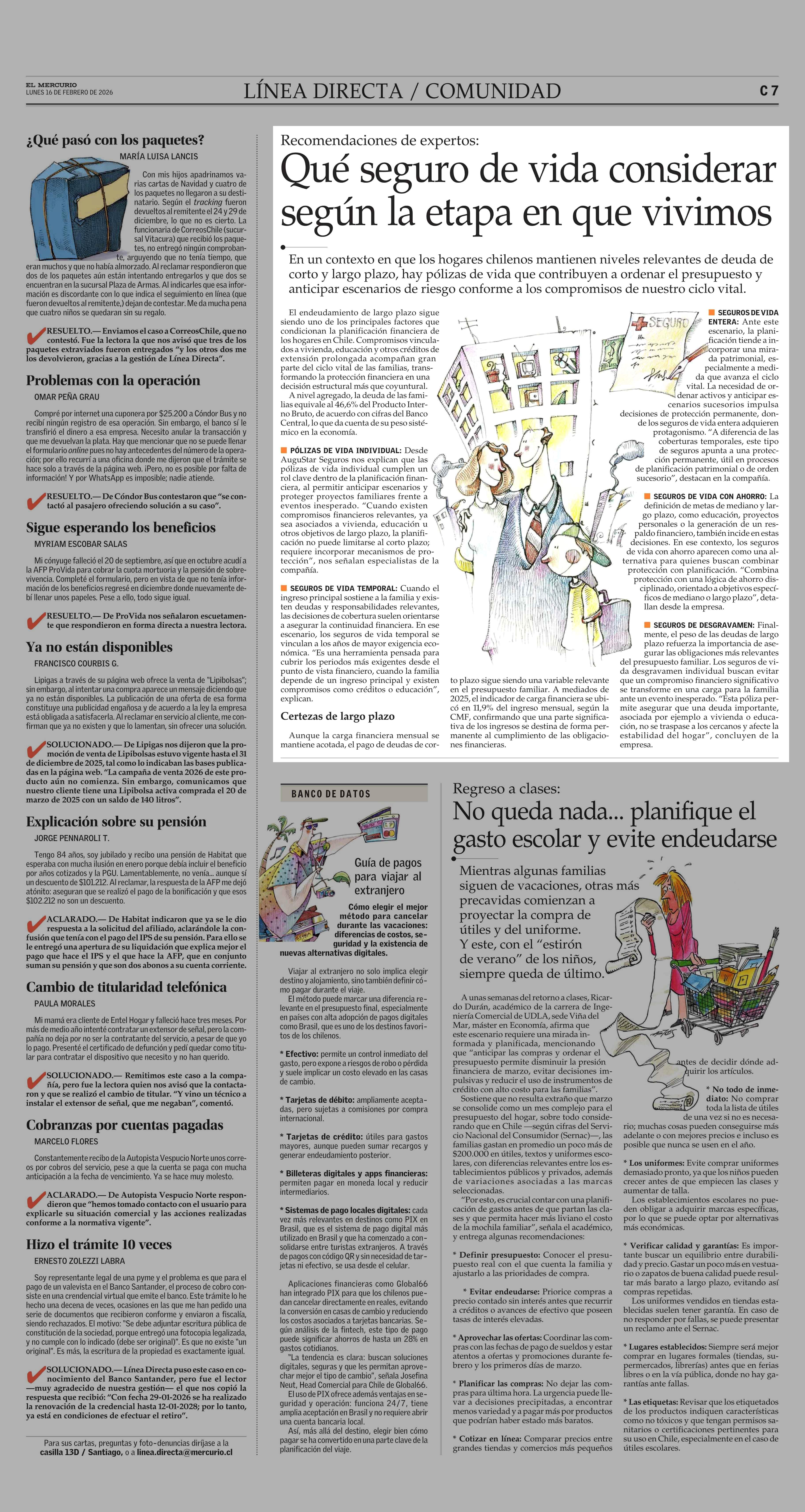 Qué seguro de vida considerar según la etapa en que vivimos 16-02-2026 El Mercurio |