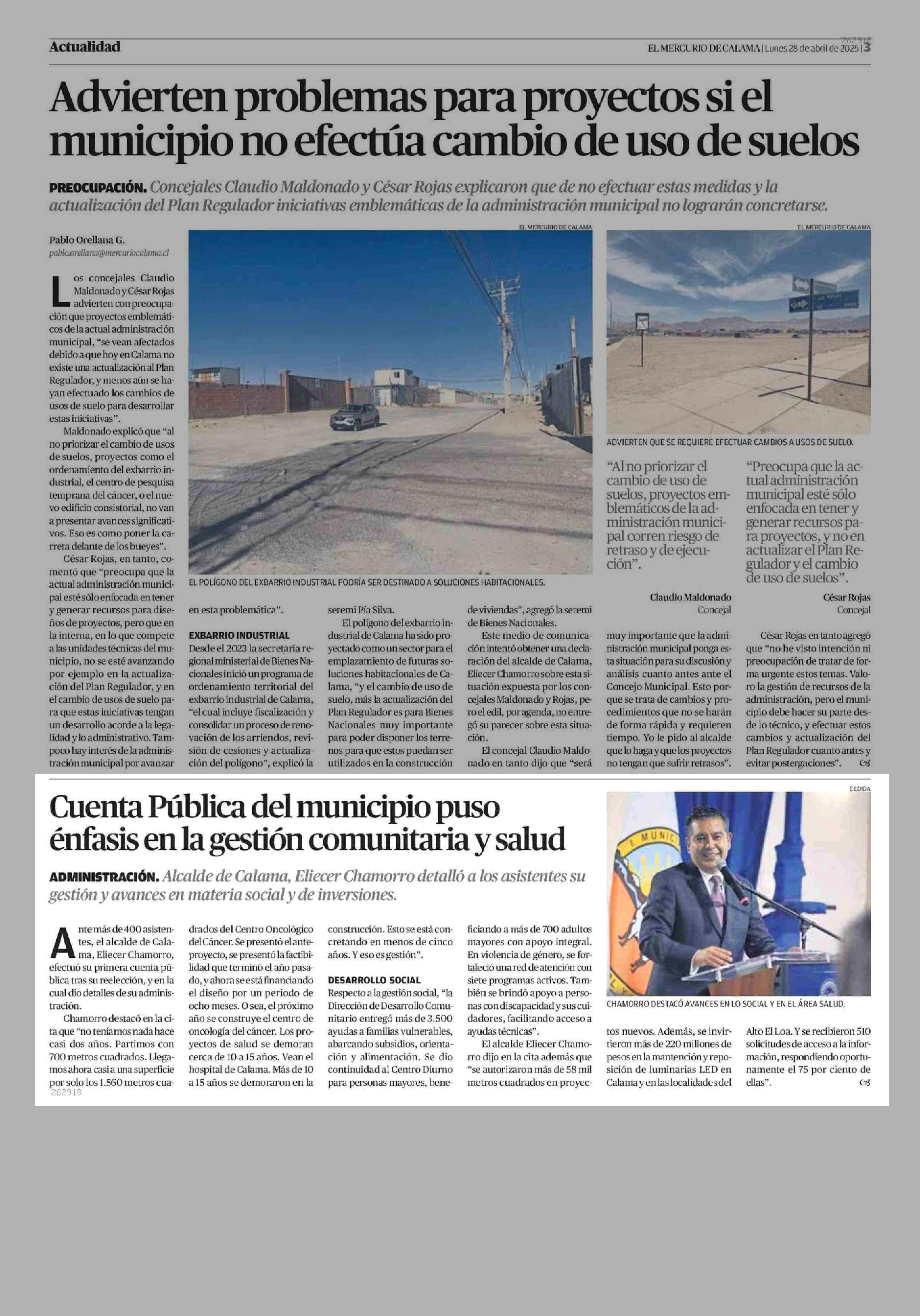 Cuenta Pública del municipio puso énfasis en la gestión comunitaria y salud 28-04-2025 El Mercurio de Calama |