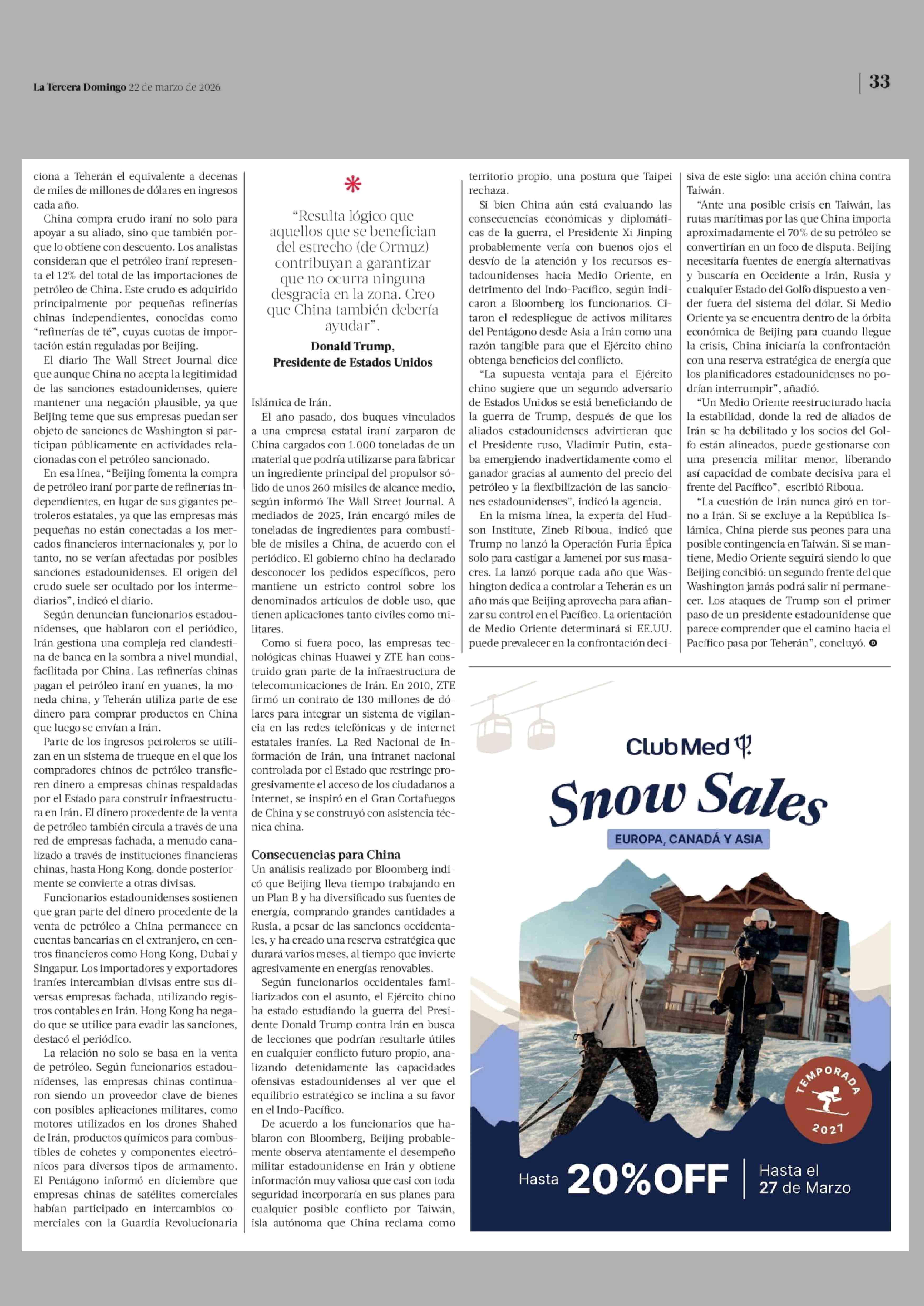 Fuente: La Tercera (La Tercera) Página(s): 32-33