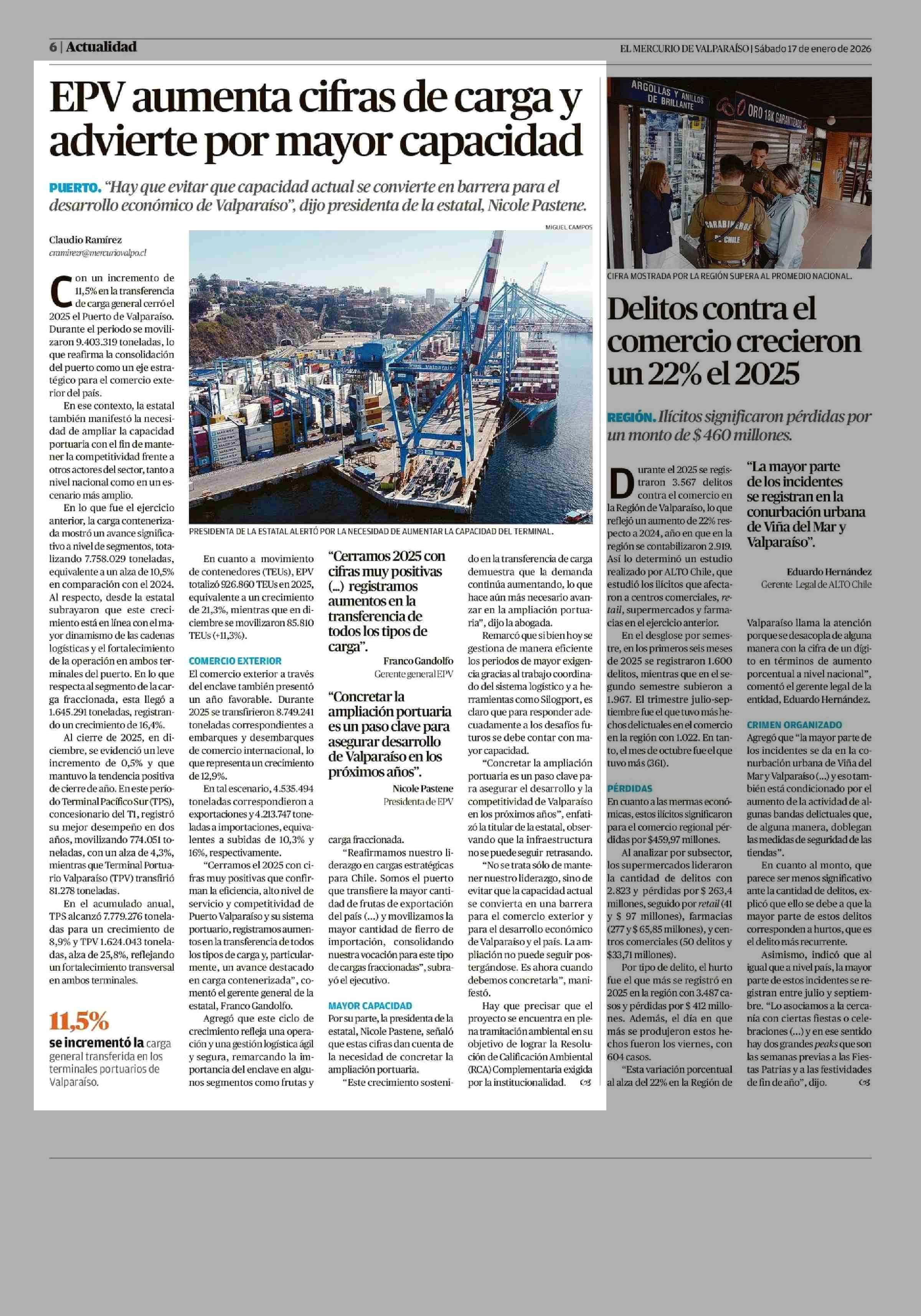 Título: EPV aumenta cifras de carga y advierte por mayor capacidad