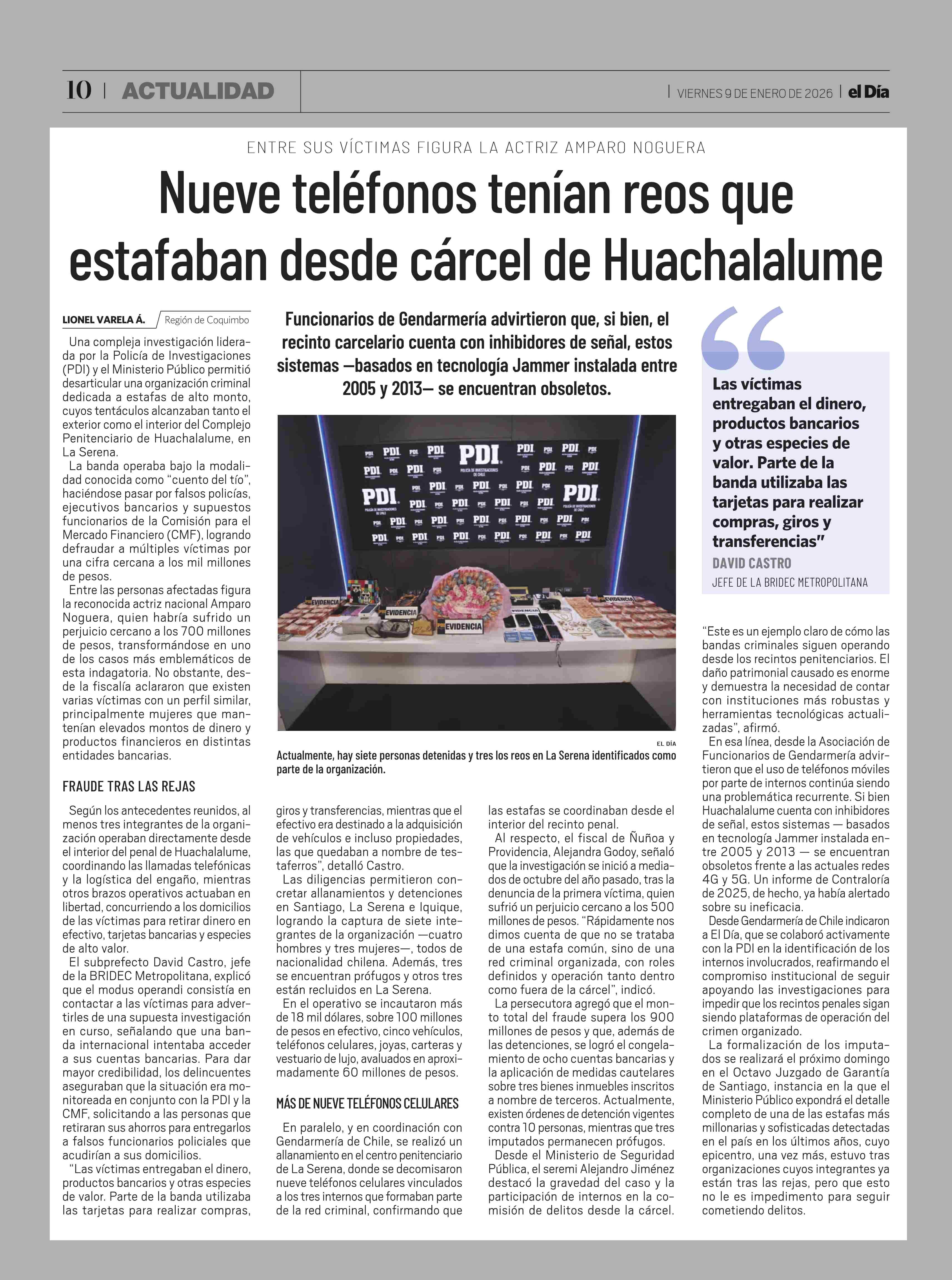 Nueve teléfonos tenían reos que estafaban desde cárcel de Huachalalume 09-01-2026 El Día |