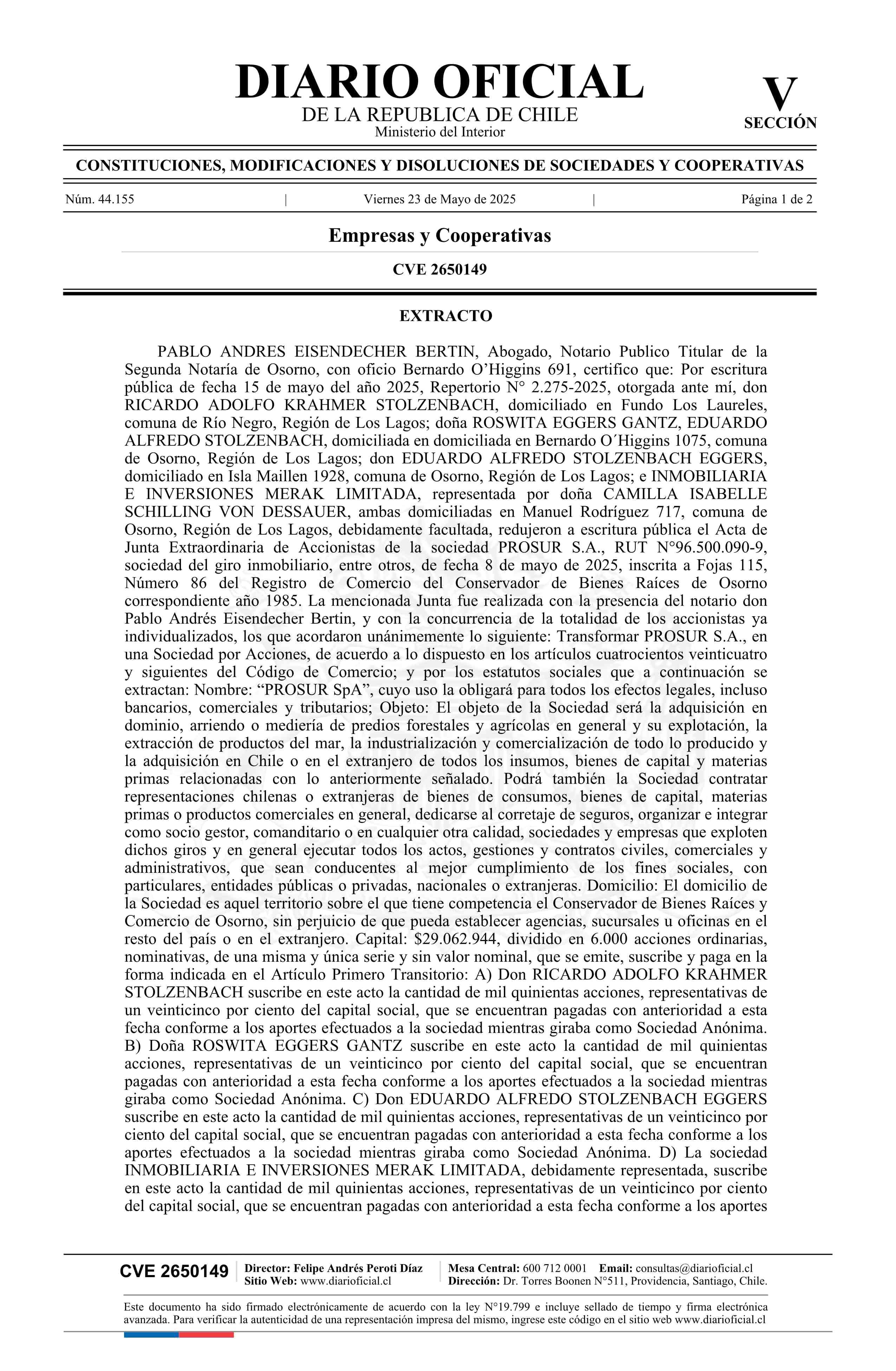 PROSUR S.A. 96.500.090-9* 23-05-2025 Diario Oficial Edición Electrónica |