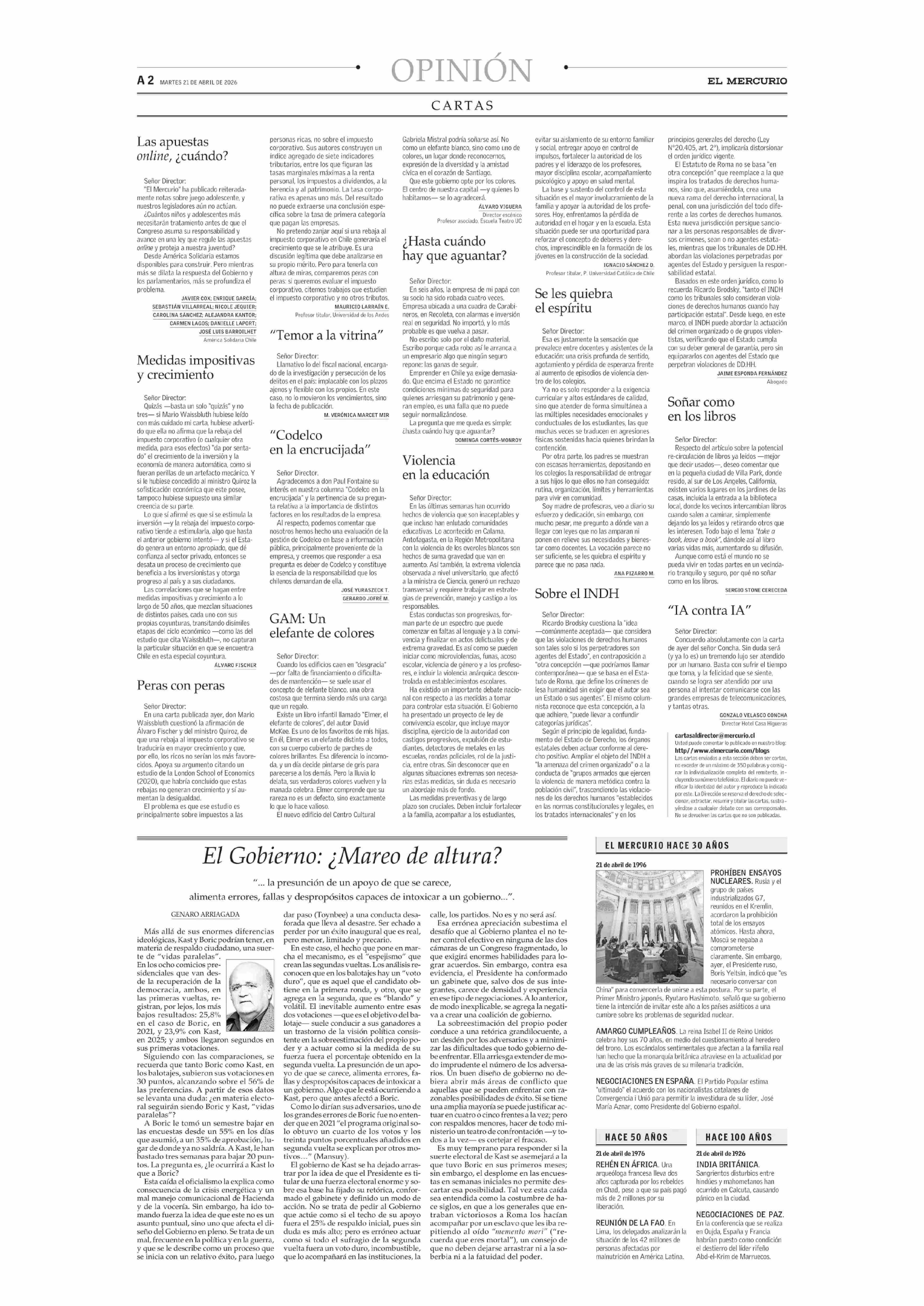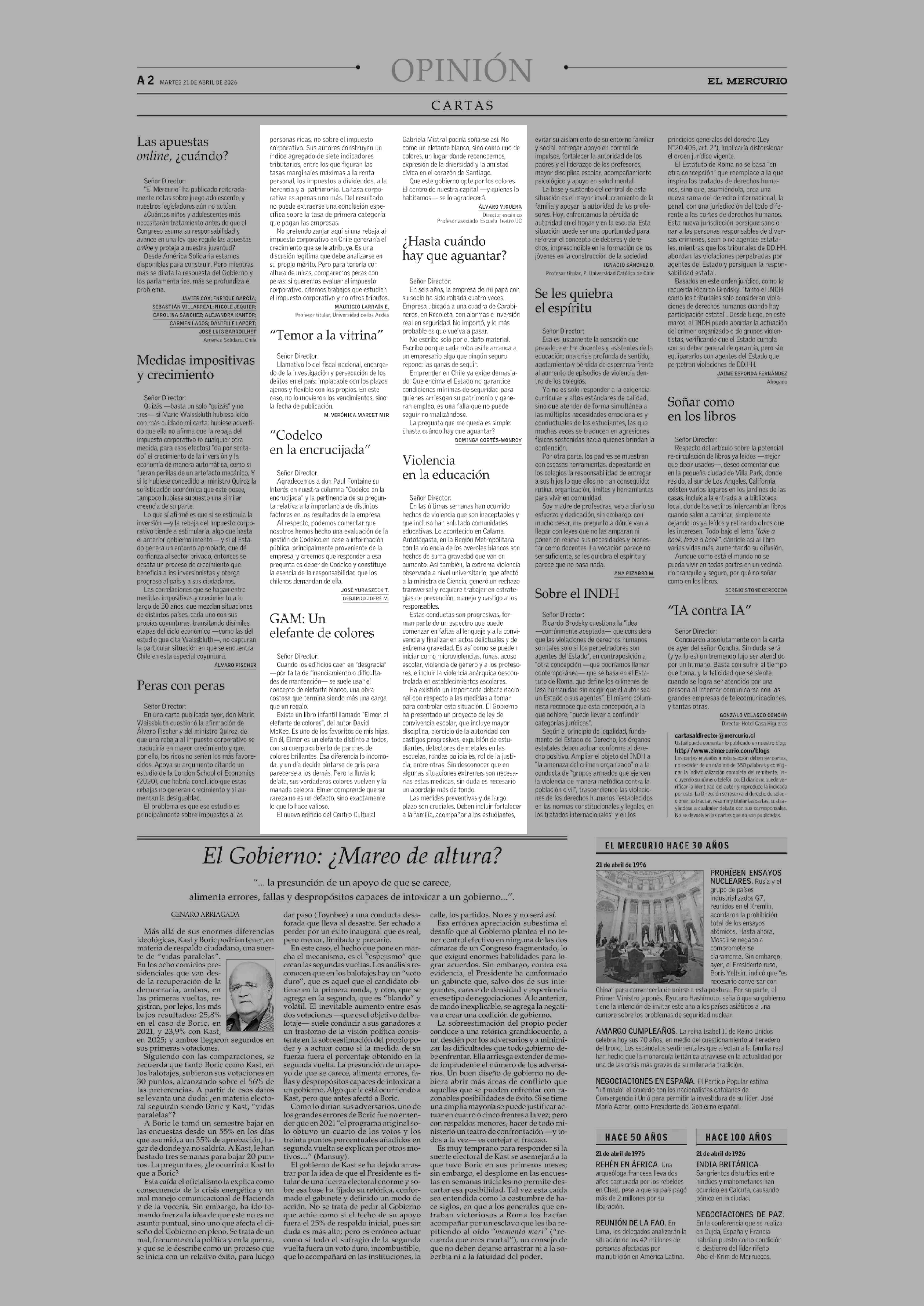 CARTAS: GAM: Un elefante de colores 21-04-2026 El Mercurio |