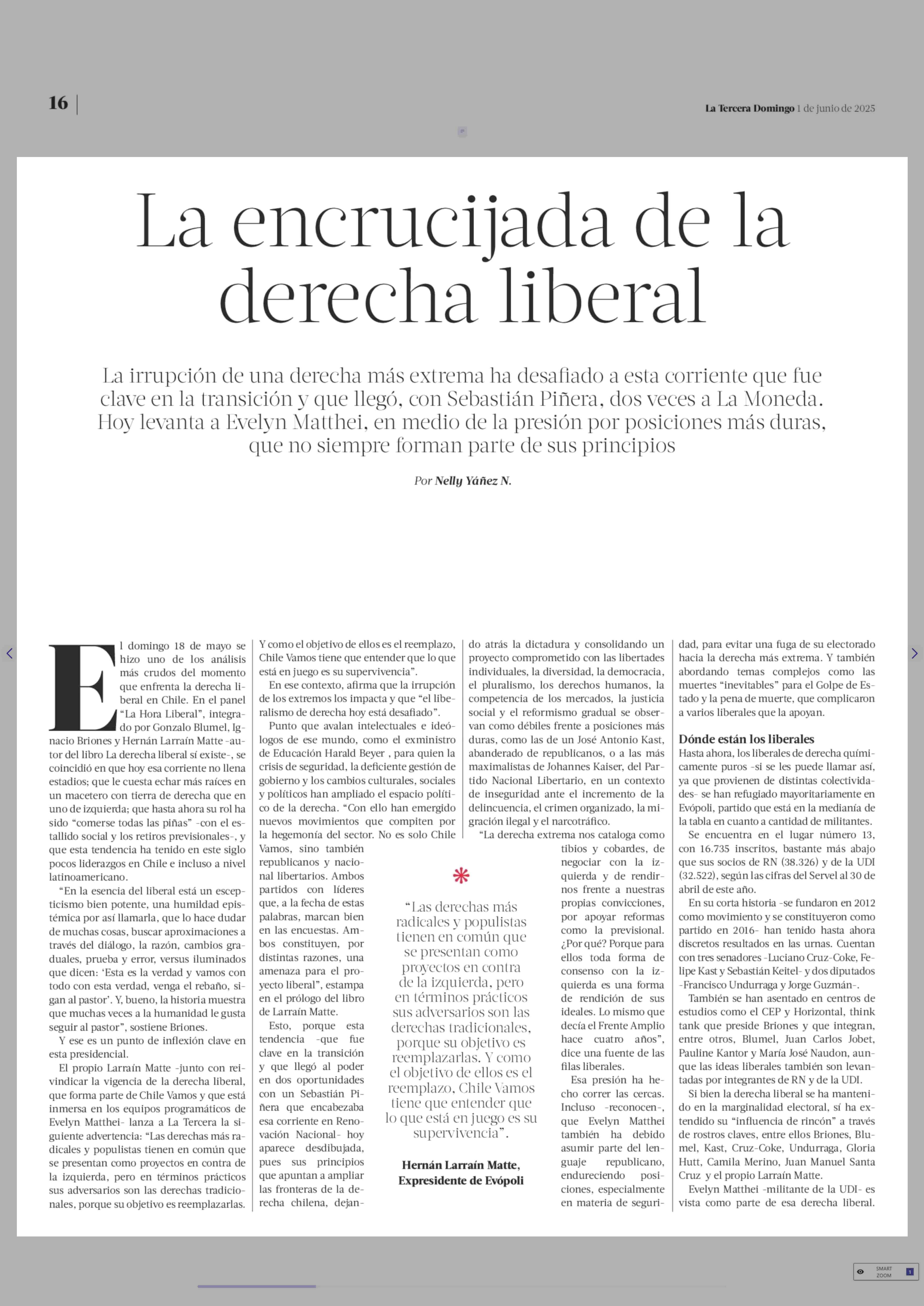 La encrucijada de la derecha liberal 01-06-2025 La Tercera |