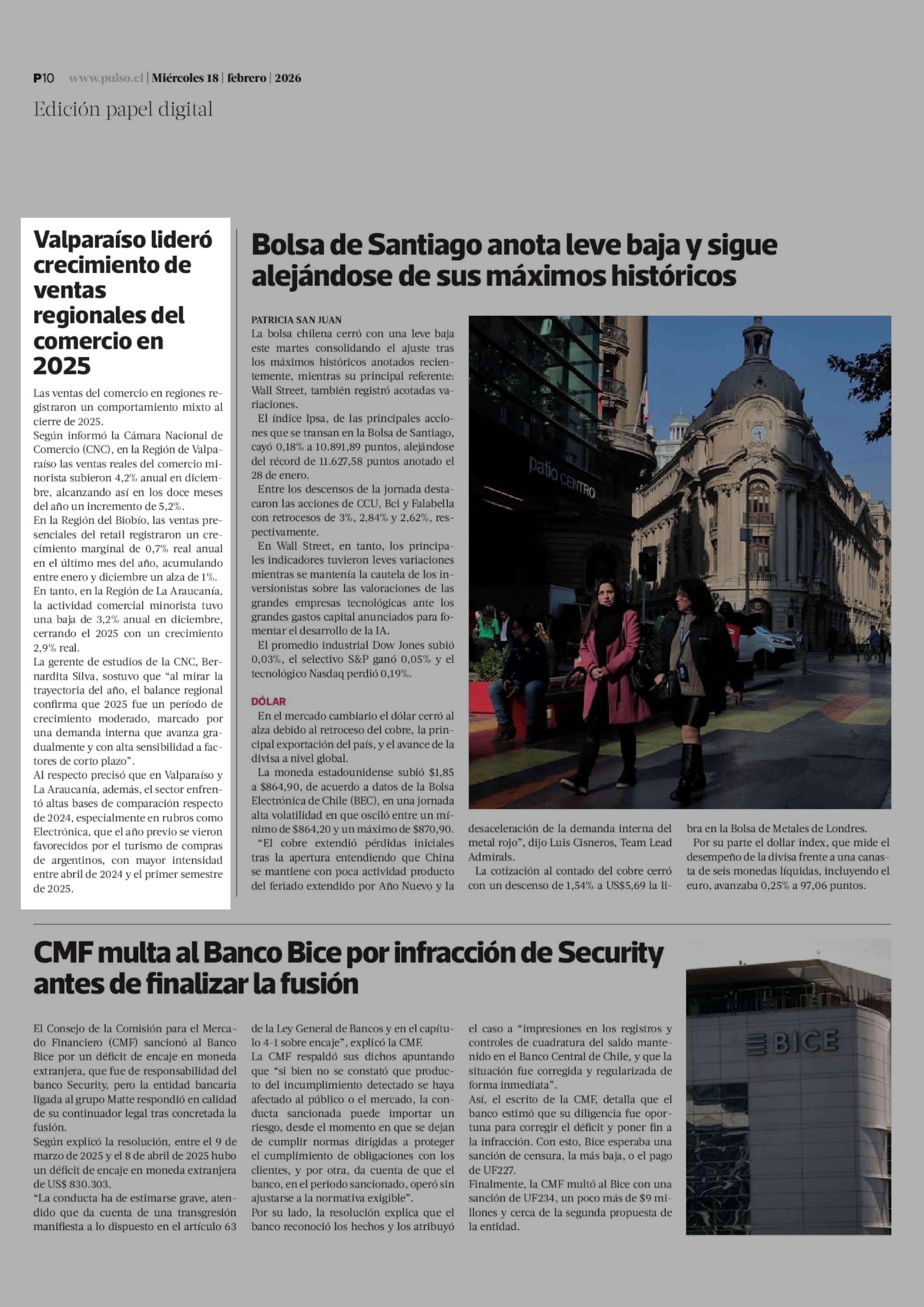 Fuente: La Tercera (La Tercera - Pulso) Página(s): 10