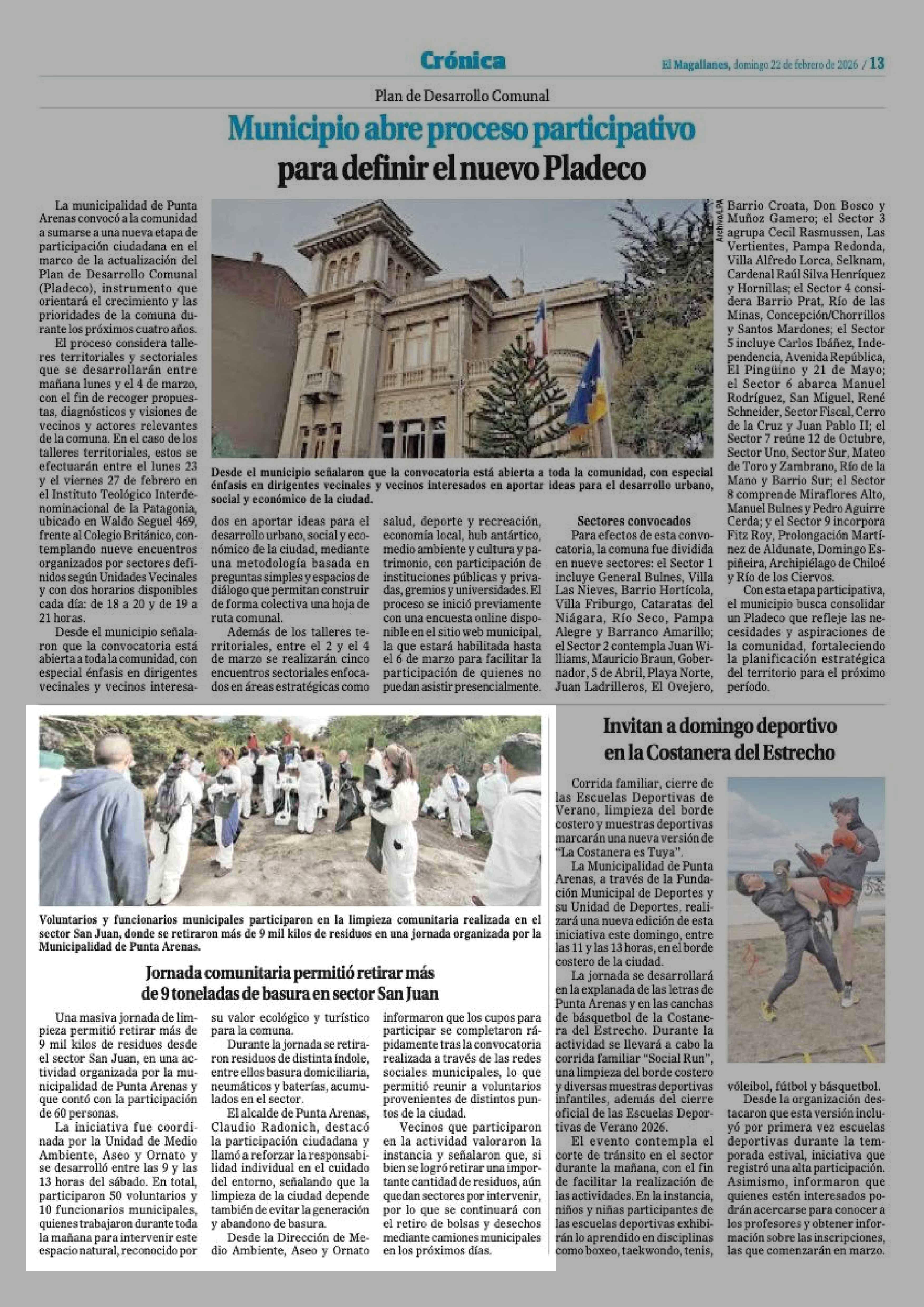 | Fecha: | 22-02-2026 | Sector: | Noticia general | Región: | Región de Magallanes y de la Antártica Chilena |