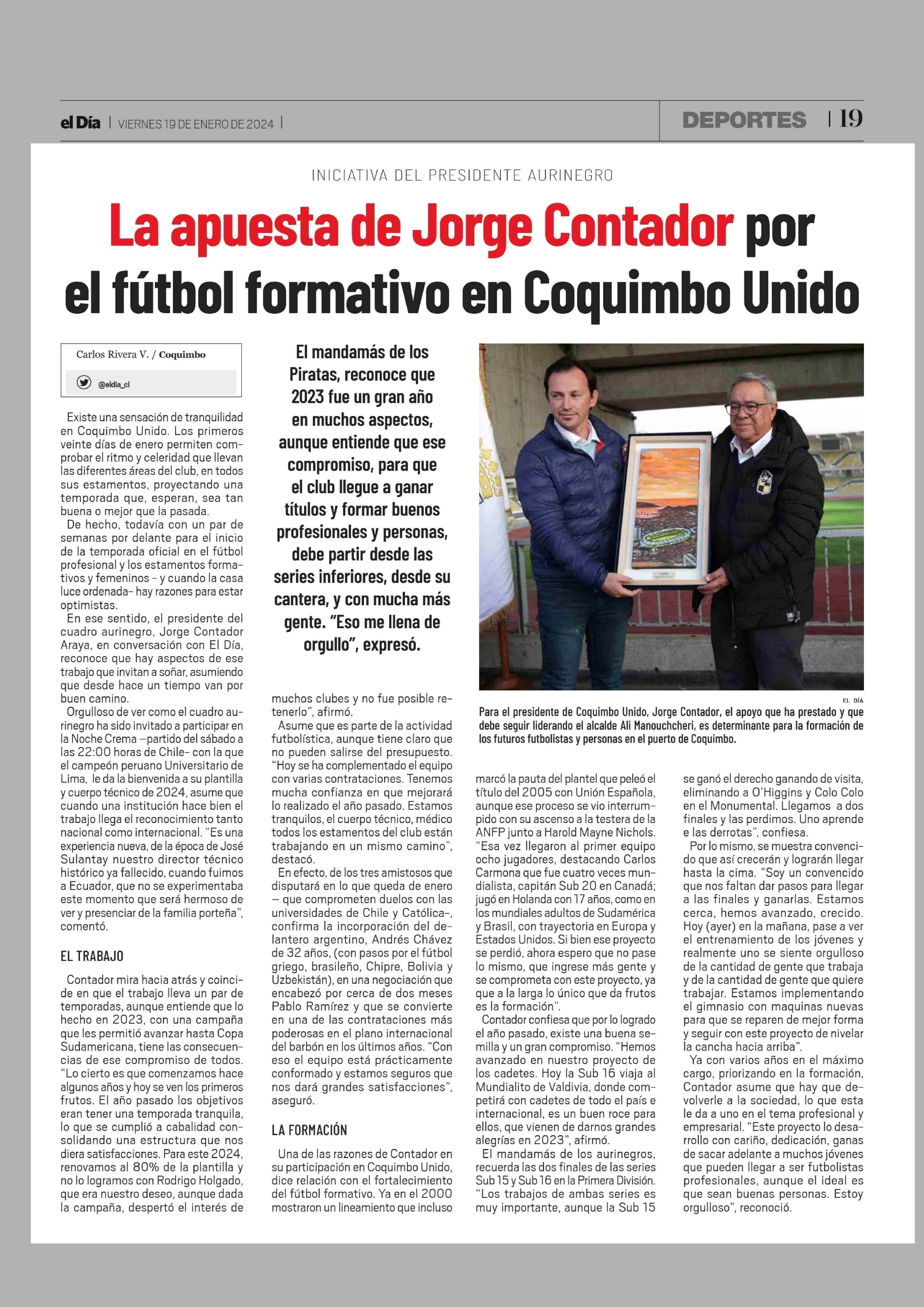 La apuesta de Jorge Contador por el fútbol formativo en Coquimbo Unido 19-01-2024 El Día |