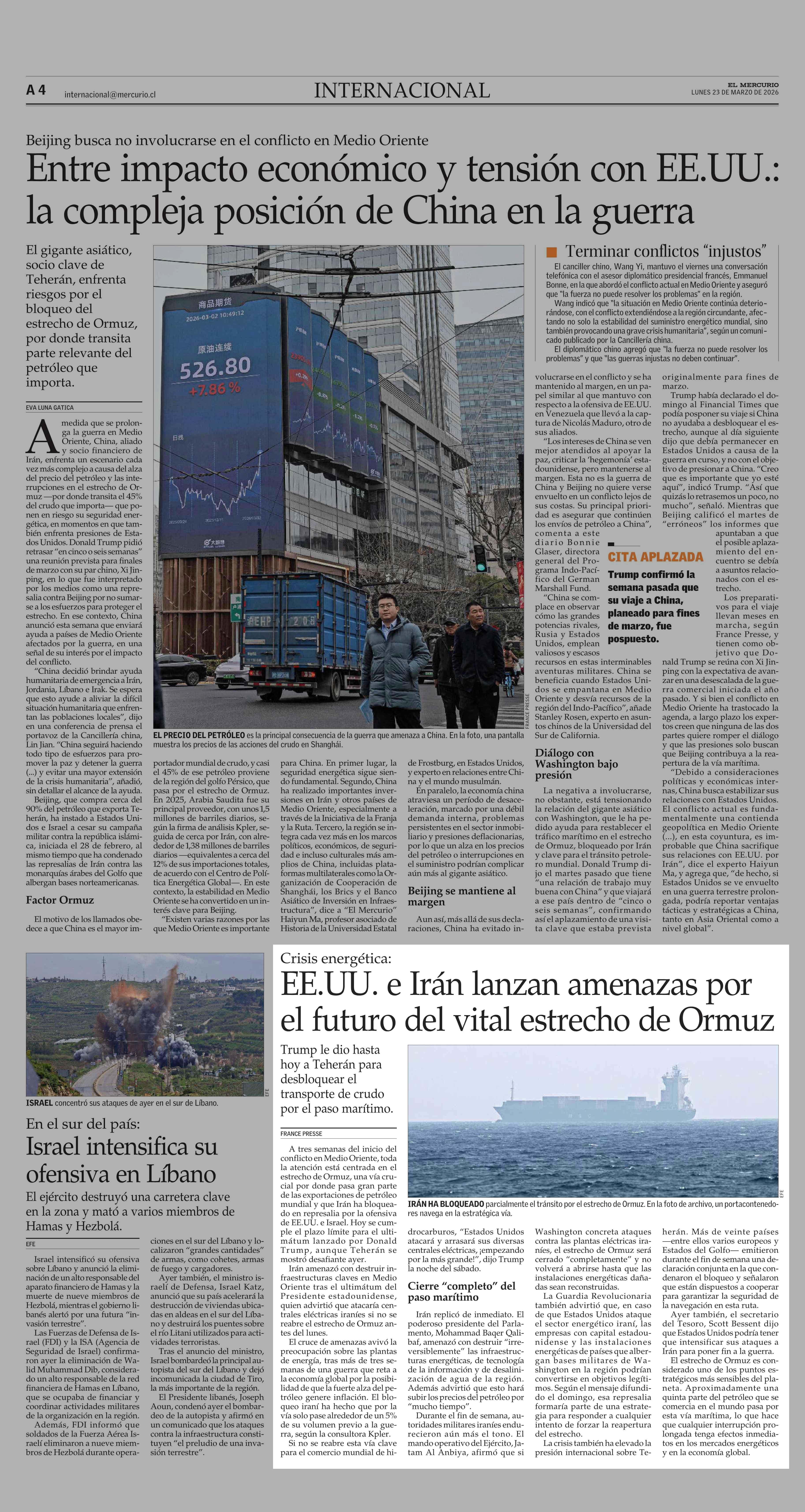 EE.UU. e Irán lanzan amenazas por el futuro del vital estrecho de Ormuz 23-03-2026 El Mercurio |