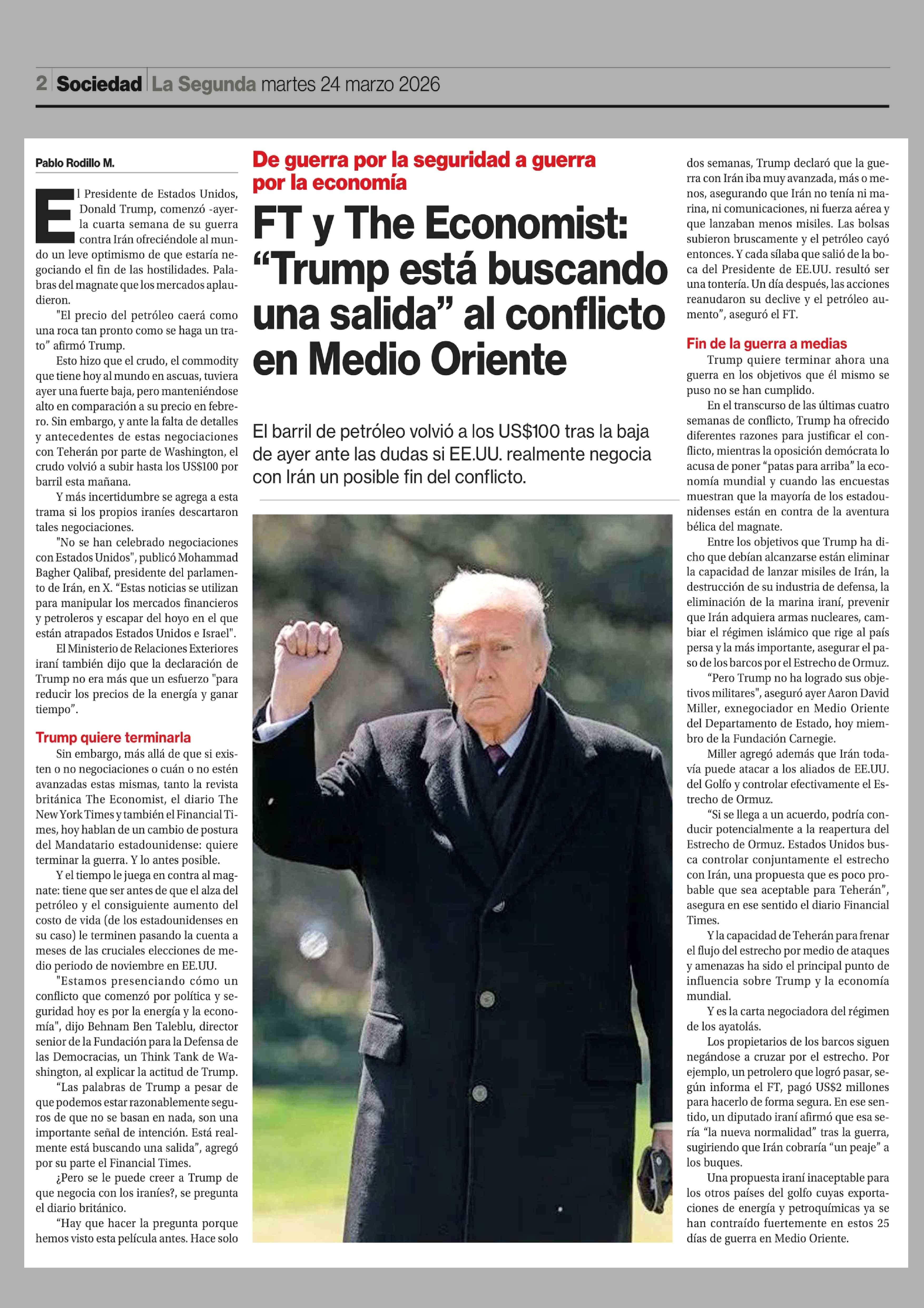 FT y The Economist: "Trump está buscando una salida" al conflicto en Medio Oriente 24-03-2026 La Segunda |